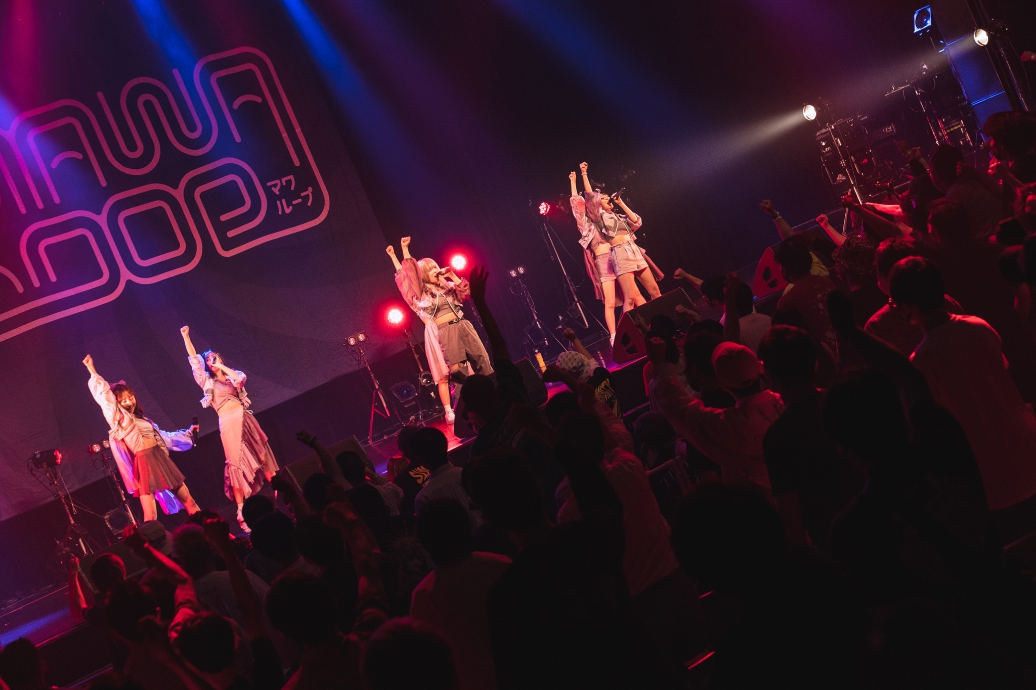 メインボーカル星熊南巫が同日に行われていた某ロックフェスの名前を挙げ、「ここを選んだお前ら、天才!」と笑いかけたあと、「There is surely tomorrow」を披露し、会場全体をラキア色へと染め上げる。メインボーカルは星熊だが、ラキアはメンバー全員が自己を存分に主張し、全員が主役を務める。「どこのアイドルにも負ける気はしないし、だから大トリやってるんで」という星熊の言葉はただイキっているだけではない。実際、半年以上前に観たときとメンバーがまとっているオーラが明らかに違う。前作『WAGAMAMARAKIA』を携えたツアーをきっかけにさらなる飛躍を遂げたことがよくわかる。ラストの「SURVIVE」の落ちサビで見せた会場の一体感は、コロナ禍にもめげずに重ねてきたライブの賜物だろう。大充実の30分で、ラキアはMAWA LOOPのトリを立派に務めあげた。彼女たちの勢いは今後さらに増していくことは誰の目にも明らかだったはずだ。