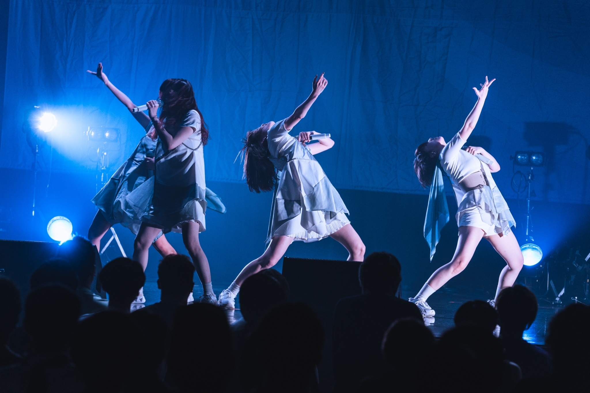 そこから一転して、「Dead End」ではストレートなロックチューンで牽引する。ロックとはいえ、ストリングスやその他の上モノを巧みに重ねたバランスのとれたサウンドで非常に聴きやすい。4人のダンスの連携も美しく、観客もぐいぐい引き込まれていく。新曲「Miss Shooting Star」でも練度の高いフォーメーションで魅せる。