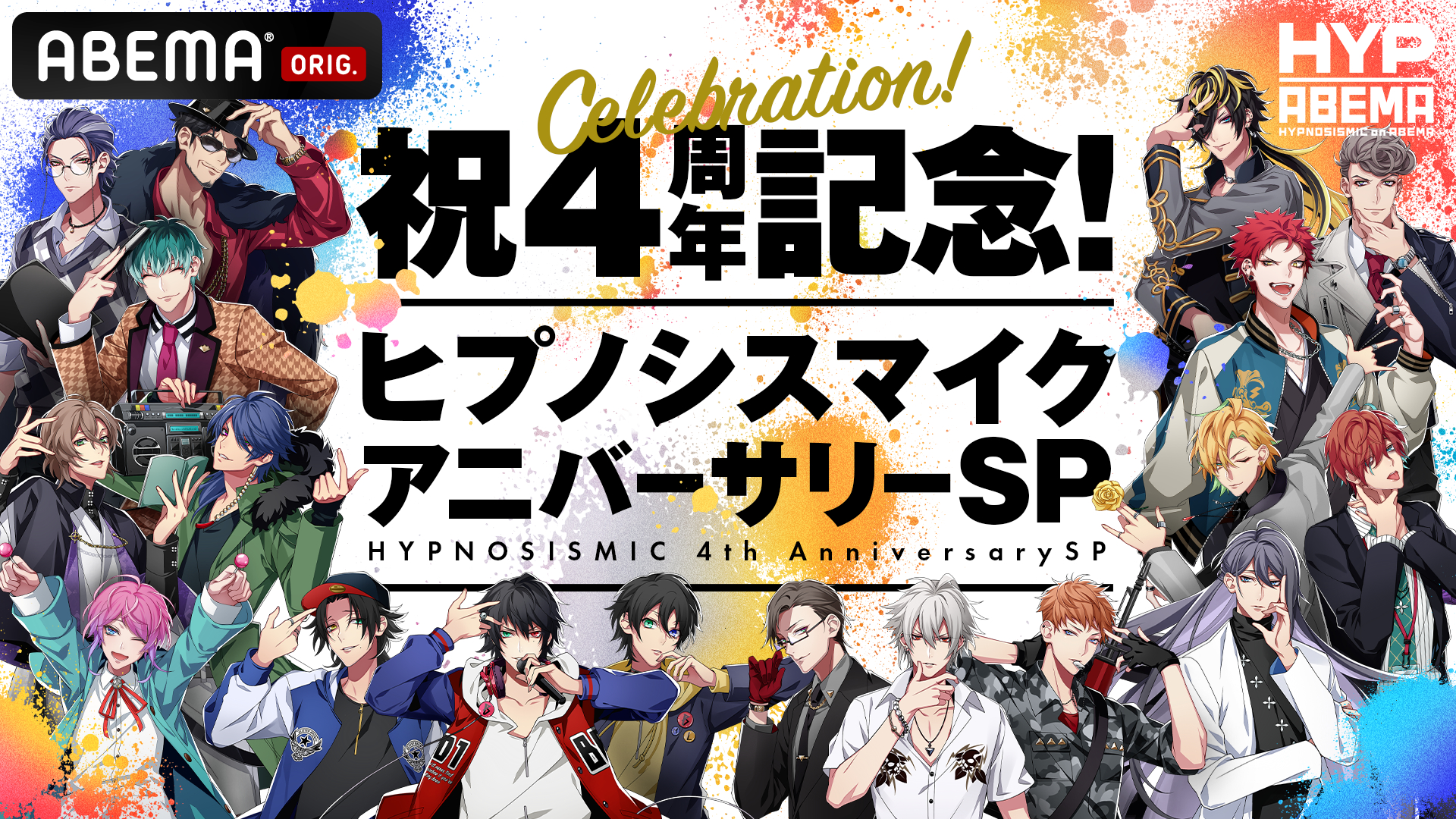 『ヒプノシスマイク』の4周年を記念して、『祝4周年記念!ヒプノシスマイク アニバーサリーSP』が、ABEMAにて9月2日(木)16時より6時間にわたり放送されることが分かった。