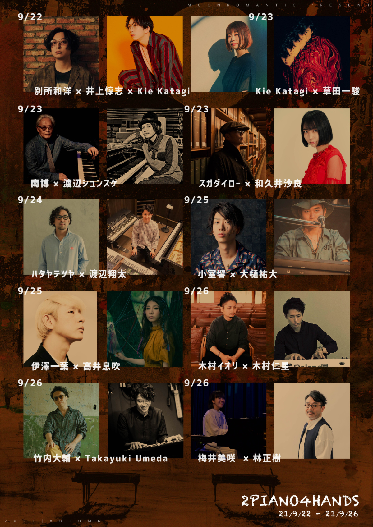 出演に伊澤一葉、南博、スガダイロー、渡辺シュンスケ、Kie Katagiなど人気ピアニストが青山 月見ル君想フに集結し、10回の公演を行う。普段はピアノのない月見ル君想フにグランドピアノを搬入して行うこの企画では、客席はピアノを360度囲むように設置し、お客さんが好きな位置でピアノの音を楽しむことができる。配信では5.5Mのクレーンを駆使した空中映像で通常見ることのできない角度からの映像が視聴できる。