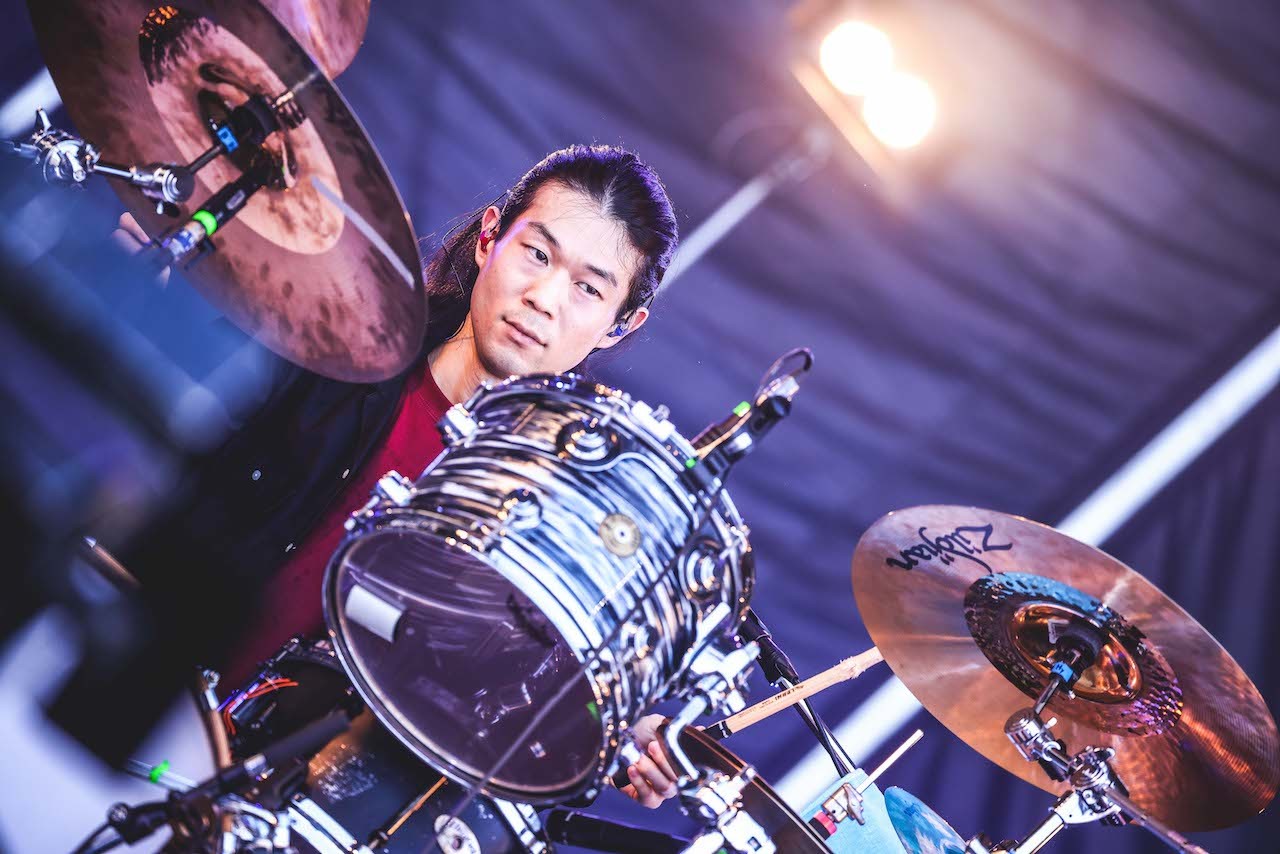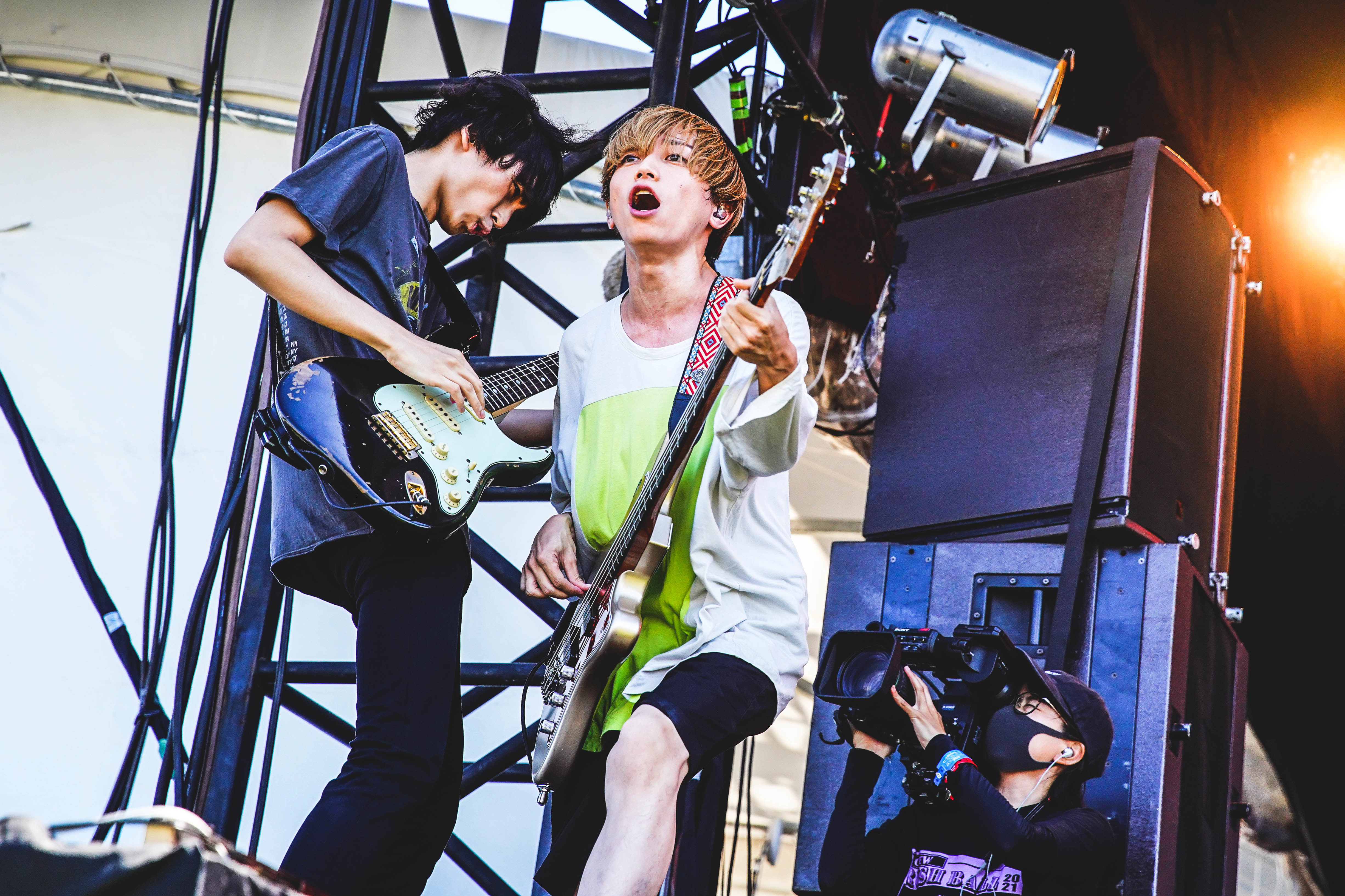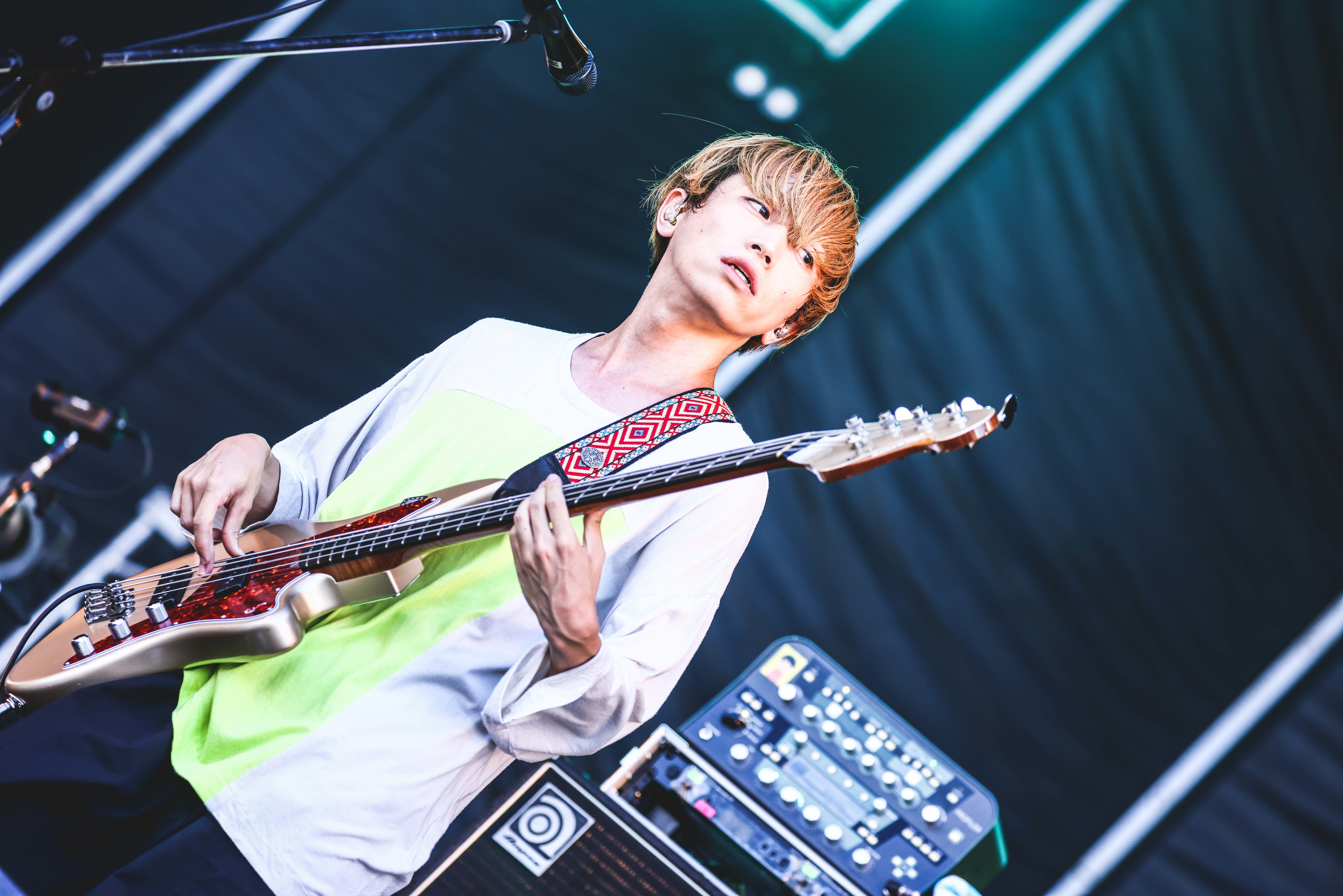 「昨年のオープニングアクトは、半年ぶりのライブだったんです。えげつないくらいに緊張してて(笑)。あとで音源を聴いてみたら、全曲倍くらいの速さになってた。それもいい想い出です(笑)」と昨年のステージを振り返る。7月21日にリリースした2ndシングル「ワールドイズマイン」も披露され、フェスに映える彼らならではのダンスロックナンバーでしっかり躍らせる。
