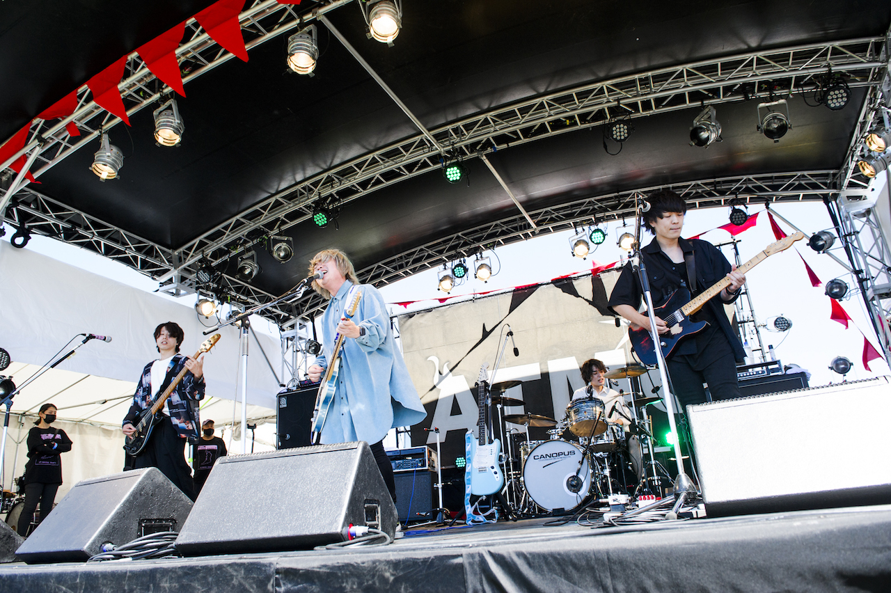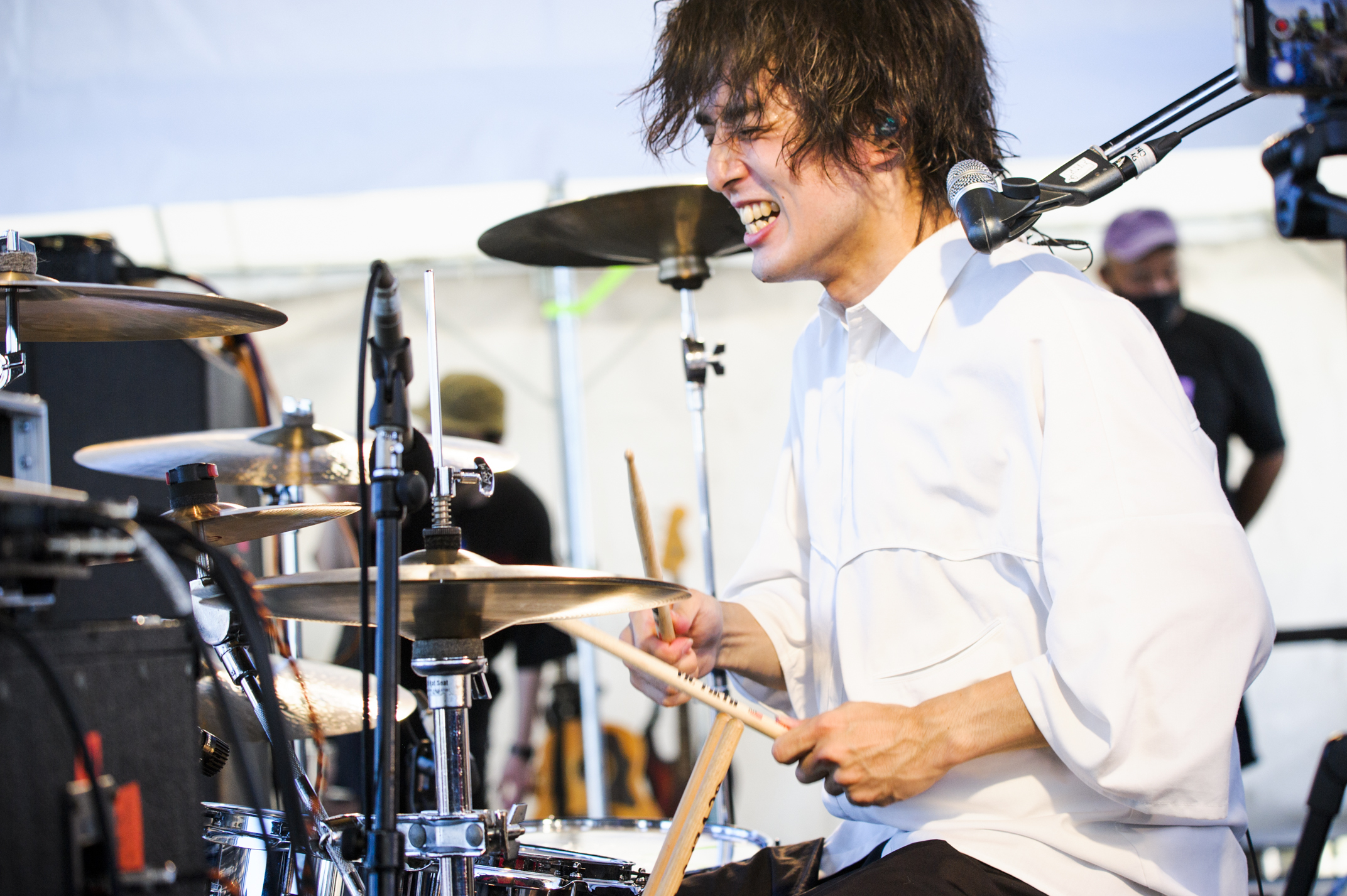 曲中、「『ライブができません、減らします』、死ねと言われてるんかと思ったね!」と切実な想いをこぼしたり、「どんな未来を語ったって、嘲笑われたりもしたけど、それでも続けてきたからこそ『RUSH BALL』に帰ってこれました!」と叫ぶシーンも。気迫をみせつけ、「ありがとう! 夢がまた増えました。関西バンドとして、『RUSH BALL』の常連になること! 今度はあっちでやりましょう! あっちで!」と更なる大きな舞台への野望を見せ、幕を閉じた。