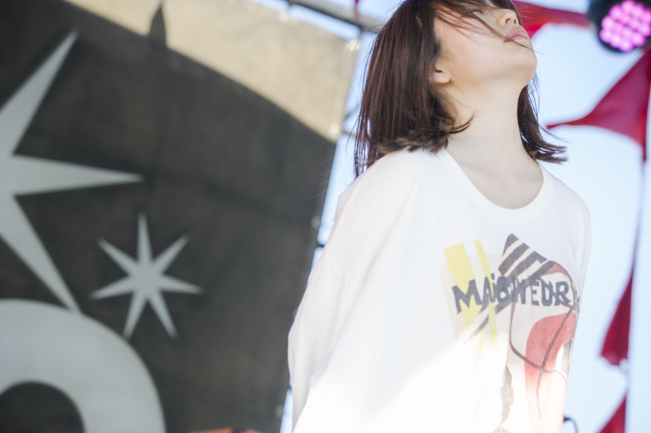 「初めての野外フェス、とっても嬉しいです」と端的に思いの丈を語り、「せっかくなので、はじめての曲をやってみようかと思います」と、今月11日にリリースされたばかりの新曲「東京マーブル」を披露。まだ明るい時間だけれども、一気に会場をムーディーに包み込み、観客たちも心地良さそうに身を委ねて踊る。