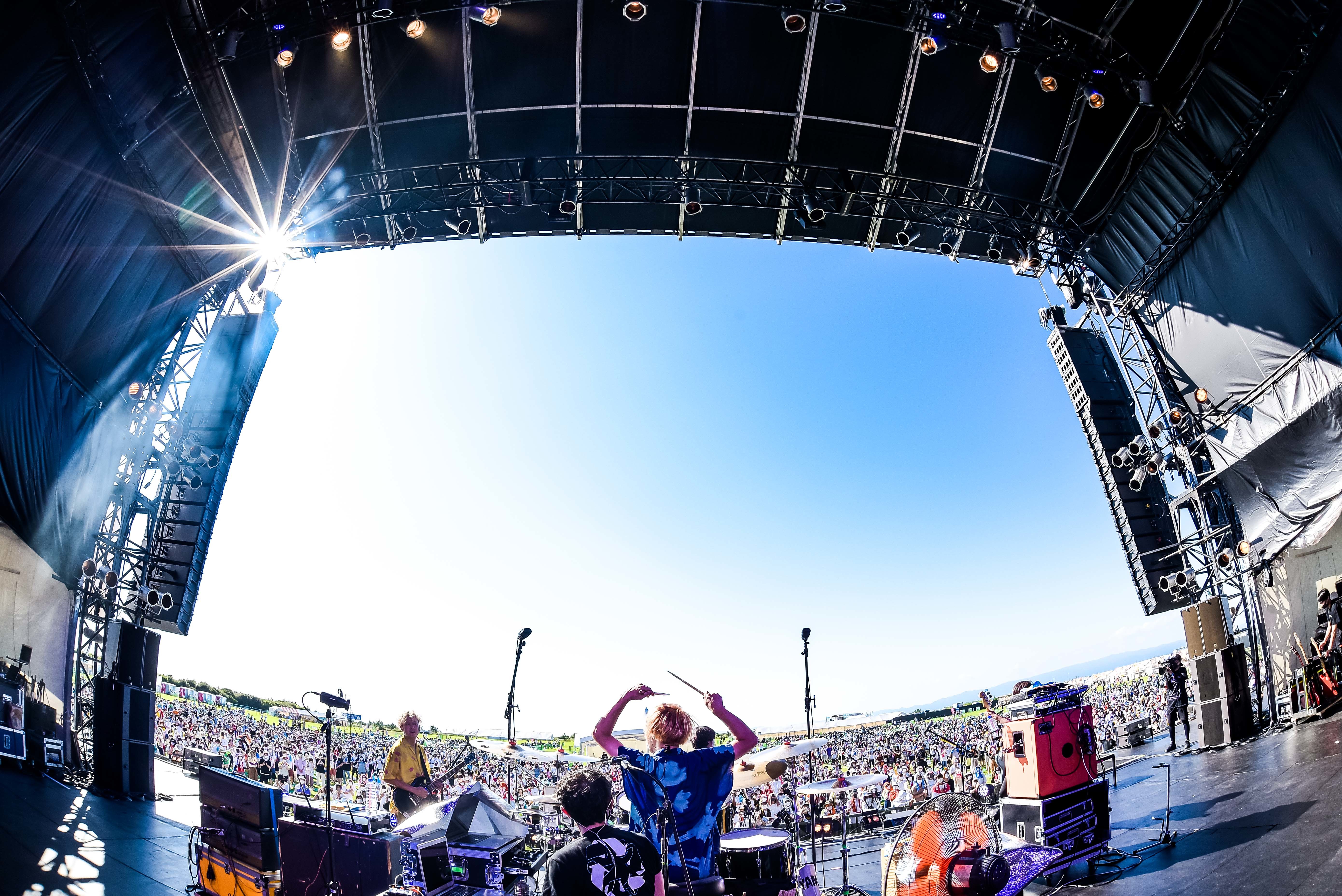 個人的には、いつまでも若いイメージはあるものの結成して12年であり、8月25日(水)には7枚目のアルバム『ACTION!』も出たばかりである。そこからの新曲「宴はヨイヨイ恋しぐれ」も披露された。そして、「Love me」では心地よいメロディーで、ゆったり踊らしてくれる。この季節にピッタリな「Summer Venus」では、同期のサウンドに首藤の伸びやかな声が乗っかり、小野もステージの端っこでステップを軽やかに踏みながらギターを弾く。いつの間にかけていた寺中のサングラスもパンチがあって良い! 曲中に観客から凄いハンドクラップが起きたのも印象的であった。