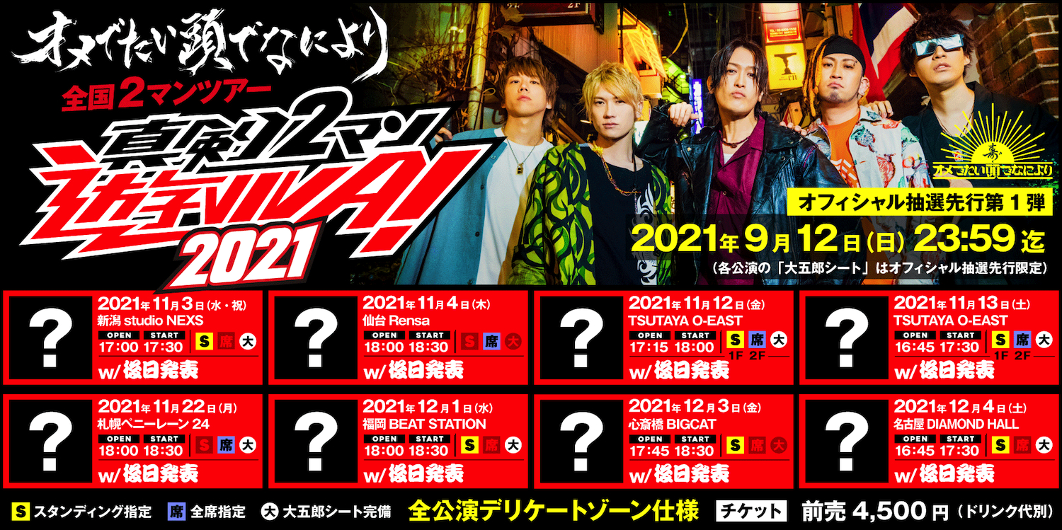 『真剣2マン遊VIVA!』は、オメでたい頭でなによりが主催し、全国各地のライブハウスで対バン相手を迎える2マンツアー。2018年からスタートしており、3回目となる今回は全7箇所で8公演を開催する。各公演の対バンは、後日発表予定だ。