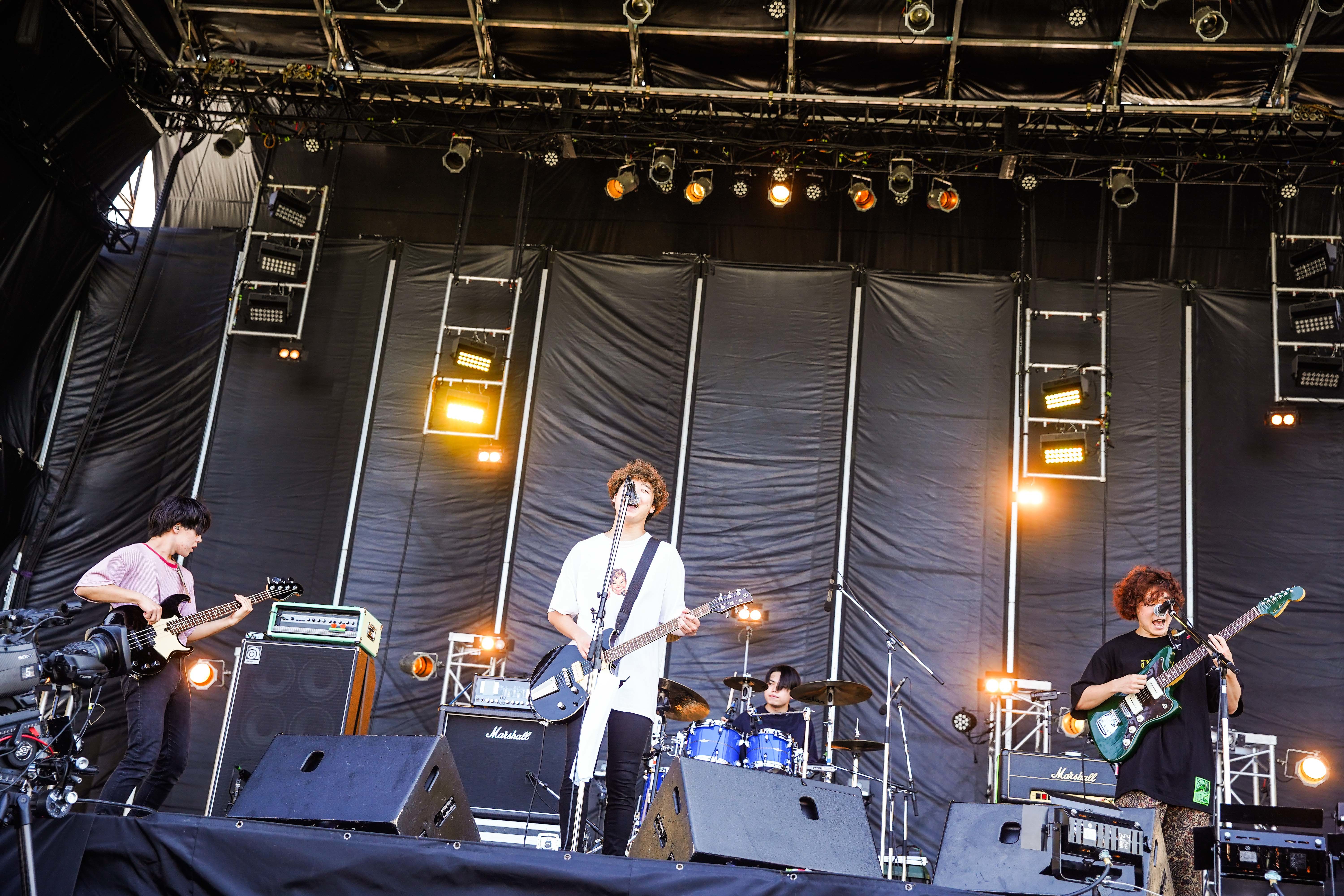 さらに人気の「FULLTEN」を続け、そのスピード感や佐藤のシャウトにわずか2曲で人々は覚醒。大画面に映し出される佐藤も満面の笑みだ。すると思わず「気持ちいい!」(佐藤)と感情をあふれさせ、今度はさわやかな「HAPPY SONG」と「SUNDAY」の2曲。伸びやかかつ語りかけるような歌声、片思いの幸せを綴る言葉や心をそっと解きほぐす言葉、優しい3人の音色、広がりあるメロディ……青春を彩る夏にぴったりのナンバーに若者たちは気分よく体を揺らす。