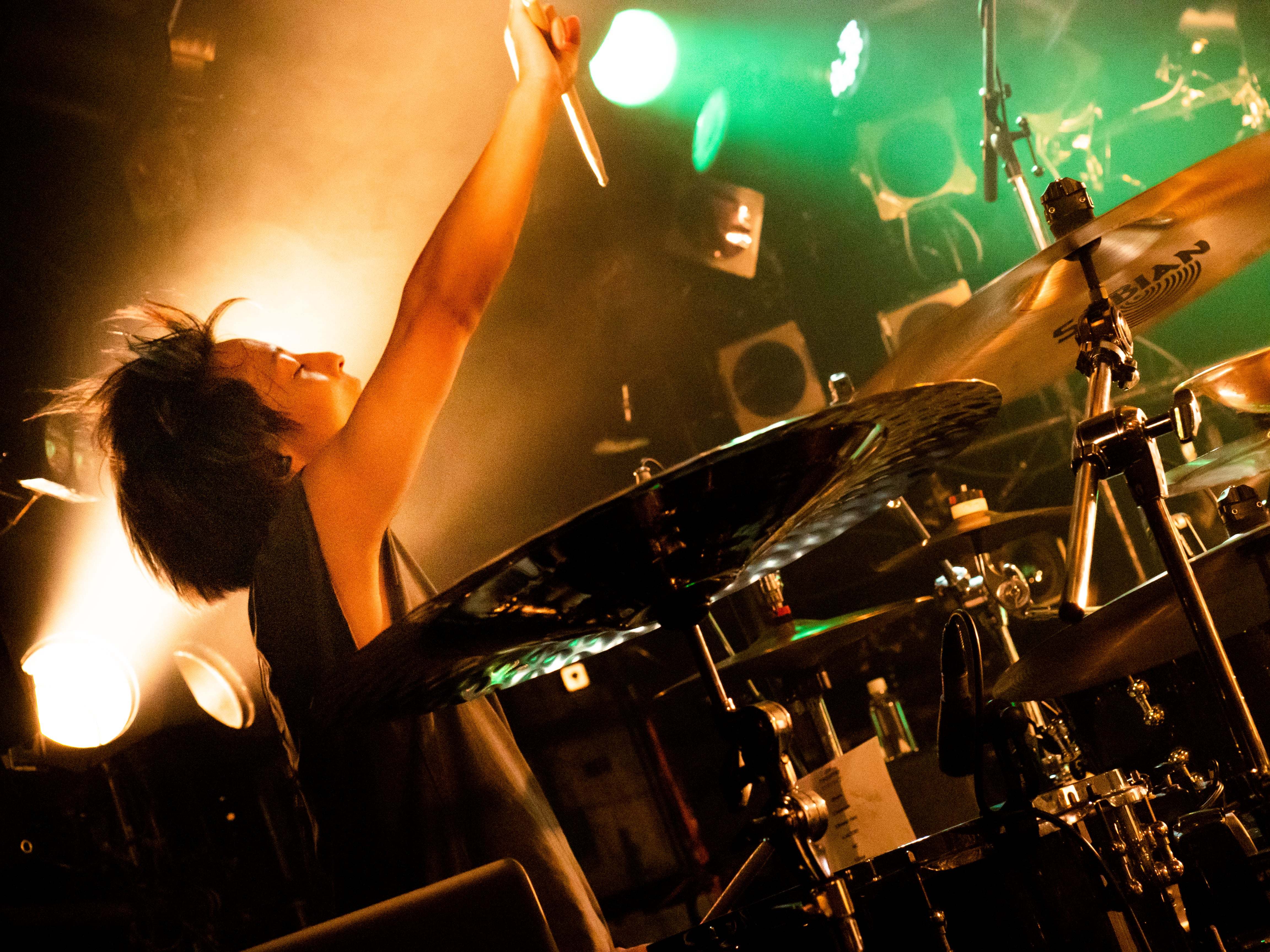 ボーカル&ピアノのYujiが、声を出せない観客の思いを全身で受け止めて叫ぶ。ラウドロックの骨格に、メロディックなピアノポップのエッセンスを組み合わせた「Departure」では、軽快な指使いでピアノを奏でたかと思えば、次の瞬間にマイクを握って立ち上がり、拳を振り上げて観客を煽る。ピアノロック系バンドはほかにもいくつかいるが、1曲の中で二つの役割を全力でこなすパフォーマーはあまり見たことがない。「Forever Hero」「VICTORY」と、シンガロングのあるキャッチーな曲を連ねてオーディエンスをぐいぐい巻き込む。ベースのSHiNとドラムのRyogaが重くて速いビートを叩き出し、ギターのKohtaが気持ちのこもったソロを弾く。みんな笑顔、楽しそうだ。