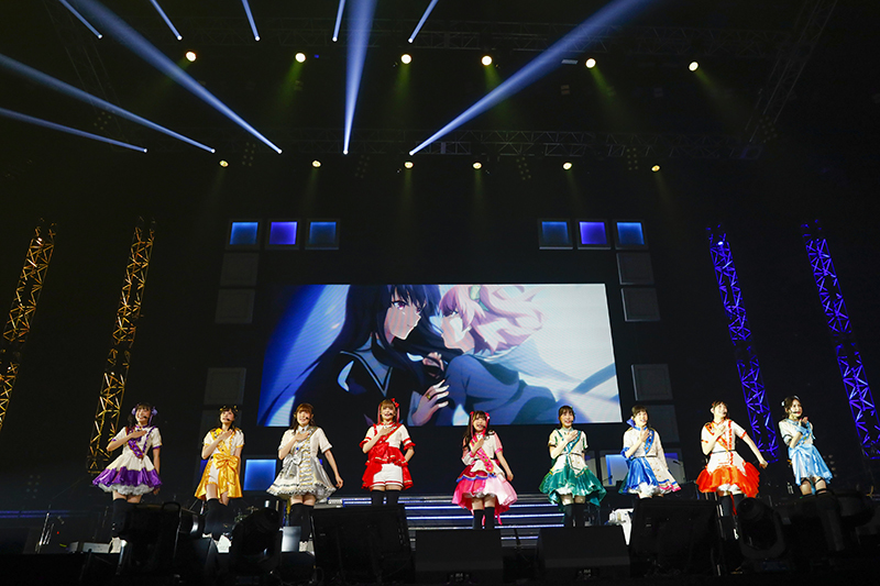 ステージ上には Assault Lily [一柳隊]が、2.5次元舞台さながらの前口上と共に登場し「君の手を離さない」を披露、続く「GROWING*」ではトロッコに乗り、ステージからアリーナへと飛び出していくと、バックステージ上では一柳結梨役の伊藤美来が再び姿を現し、一柳隊のメンバーを優しく見守るという泣ける演出が。メインステージに戻った一柳隊が最後に披露したのはもちろん「Edel Lilie」。
