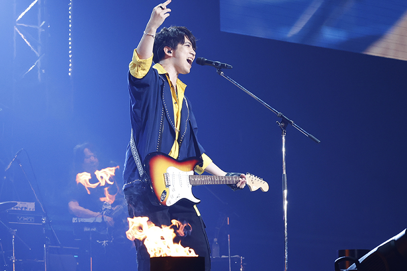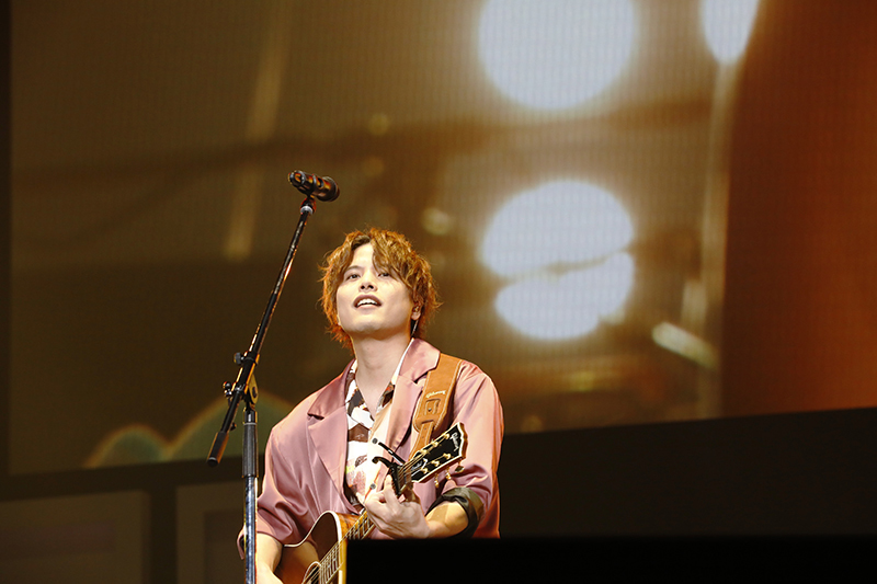 2番手を務めた声優アーティストの仲村宗悟はアコースティックギターを抱えての登場。「仲村宗悟です!よろしくーっ!」と爽やかな挨拶の後に披露したのは TVアニメ「厨病激発ボーイ」EDテーマの「Here comes The SUN」。「イヤモニ越しでもみんなの拍手がよく聞こえます!ソロアーティストとしては初のアニサマですが、また新たな景色を見させてもらってます!」と語ると続いて現在放送中のTVアニメ「RE-MAIN」EDテーマ「壊れた世界の秒針は」を披露。曲中にアニメの映像がステージに映し出されるのもアニサマならではの演出だ。