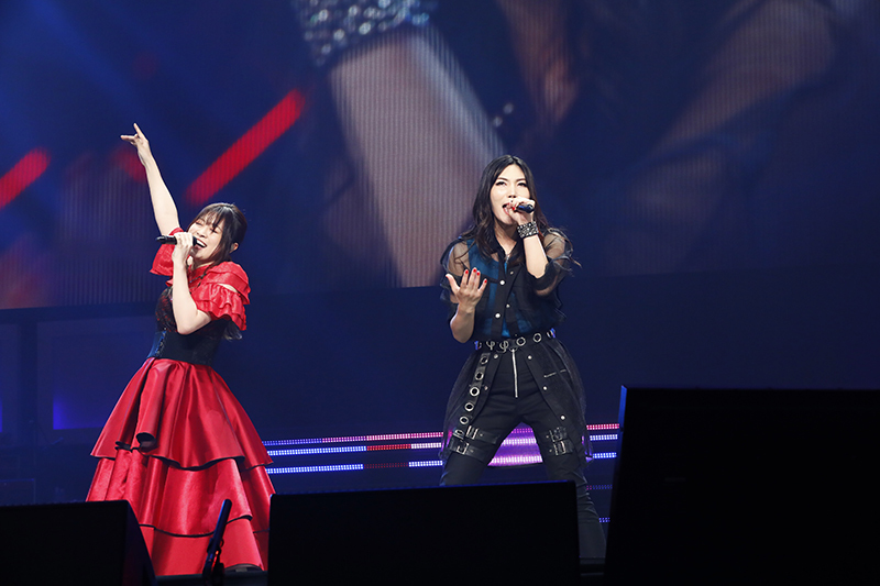 続けて間髪入れずにRAISE A SUILENが登場すると TVアニメ『アサルトリリィ BOUQUET』でOPテーマを担当した「Sacred world」でライブを繋ぐアツい展開にアリーナも大盛り上がり。続く「R•I•O•T」では「アニサマ、まだまだ暴れられますか?!」とRaychellが客席の拍手を仰ぐと「まだまだ足りないね」とさらに煽り、「EXPOSE ‘Burn out!!!’」へと激しさを増していく。改めて思うが、 RAISE A SUILENはアニソンと呼ぶにはあまりにもミクスチャーロックすぎる。