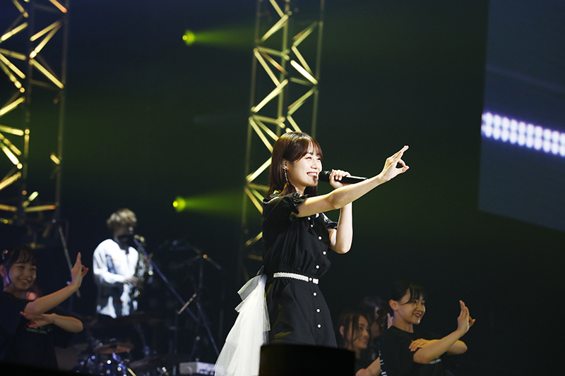 4番手は舞台下からステージ中央へ伊藤美来がせり上がりで登場し「Plunderer」を披露。ソロアーティストとしては3度目の出演となるアニサマだが「何度立っても緊張します……」と胸の内を明かす。「アニサマの舞台が私の中で大きな存在なんだなって出演する度に実感するんですが、延期になったこの1年でより強く感じました」と語る。また今年はアーティストデビュー5周年という節目の年に出演できた事への感謝も述べた「No.6」では、軽快なリズムに合わせ、アニサマダンサーズと共にまるでミュージカルのようなステージングを見せてくれた。