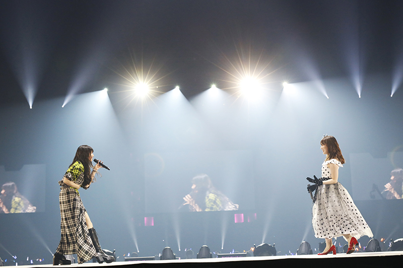 2人といえば TVアニメ『青春ブタ野郎はバニーガール先輩の夢を見ない』でスイートバレットというアイドルユニットのメンバーを演じているが、まさにそのOPテーマの「君のせい」を2人でカヴァーした。ちなみにEDテーマ「不可思議のカルテ」のカップリングにはthe peggiesの「BABY!」のスイートバレットverが収録されているが、その繋がりでのカヴァーという事だろう。トロッコに乗り、バックステージへと移動すると曲の最後「狙い撃ちするのさ」の歌詞に合わせて、銃でメインステージを打つような仕草をすると、大きな音と共に爆発して、清々しいラストを飾った。