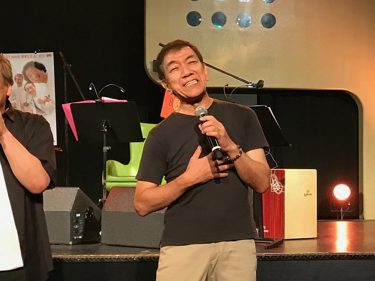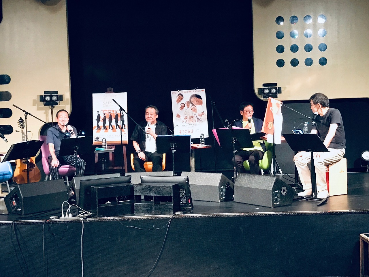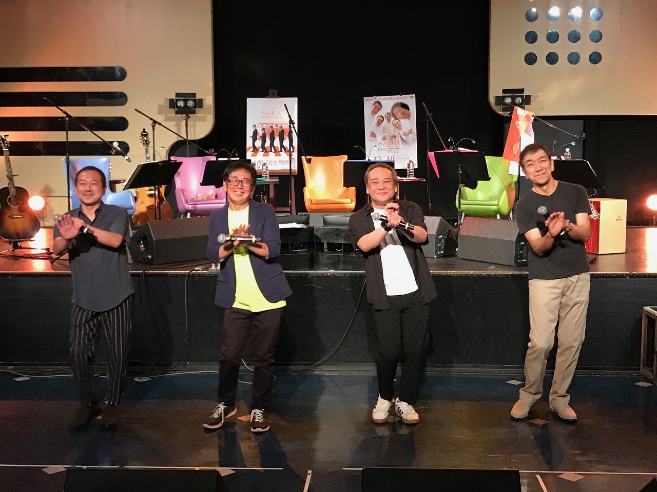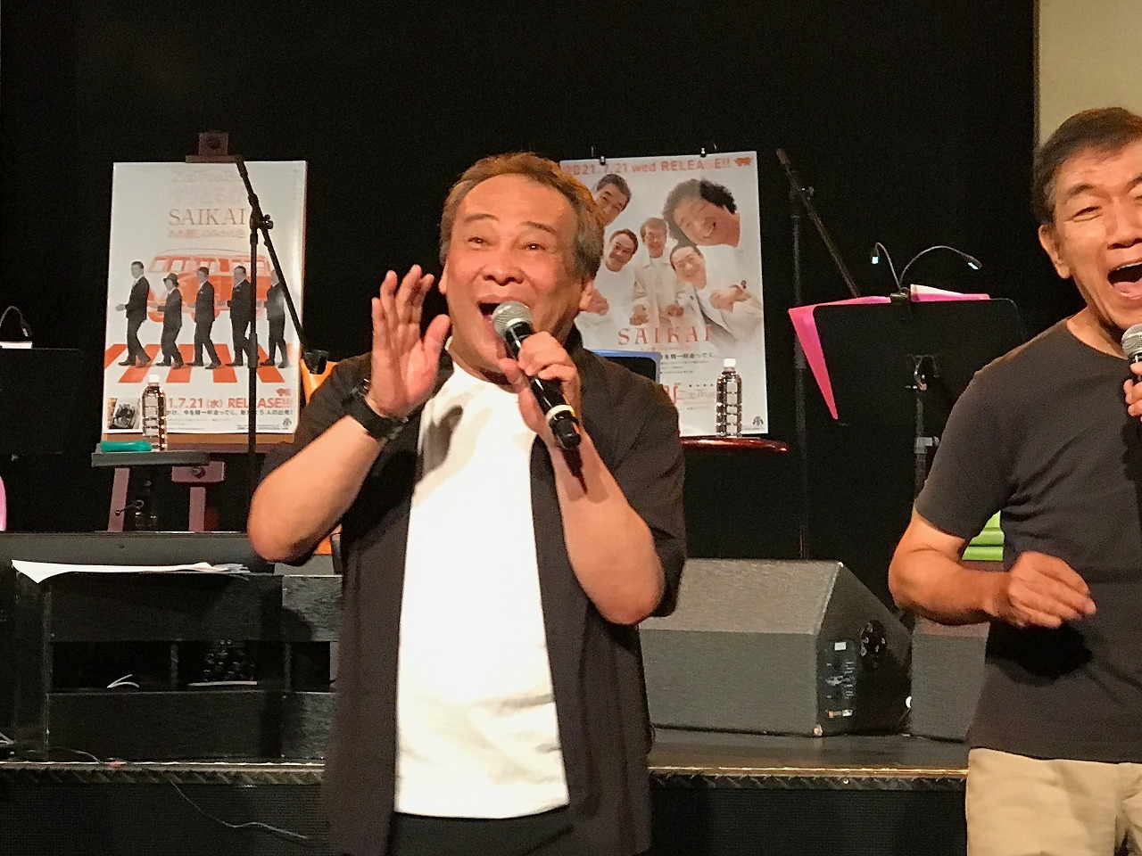 23時の配信スタートとともに新曲「SAIKAI~ああ麗しのみかん色~」そして1975年7月リリースの5枚目のシングル「太陽の季節」に続いて、数曲披露した後、7月に開催された「ずうとるびリサイタルSAIKAI2021」のライブのメイキング模様を見ながら思い出話しに話題が尽きない様子。各メンバーのソロコーナでは、池田が「井上陽⽔・少年時代」、江藤が「尾崎紀世彦・さよならをもう⼀度」、新井が「酒と泪と男と女」、そして今村が禁断のロックナンバー「ペチャパイブギ」を歌い、江藤、池田が乱入する形で踊り狂い、そして息が切れる。