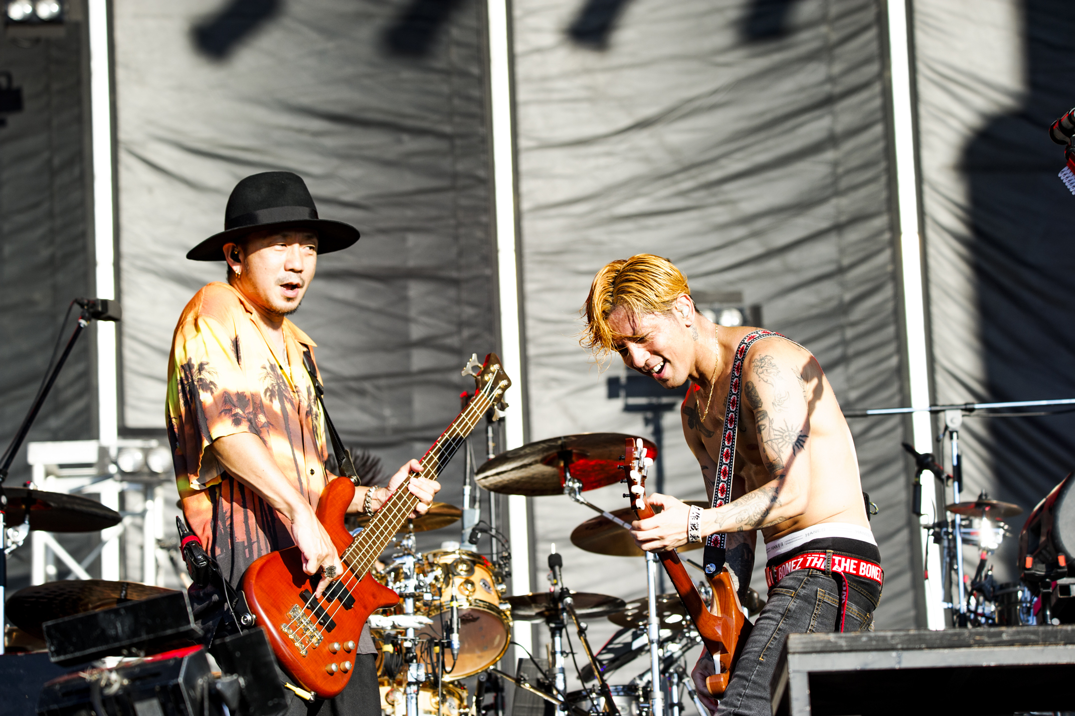 新たな時代への挑戦を告げる新曲「New Era」、サポートメンバーのT$UYO$HIがサイドステージへと躍り出てベースを響かせた最強のライブチューン「Mix it Up」と続け、モンスター級のライブバンドとしての新たな決意を表明した後は、もはやDAのライブ定番曲となりつつある「ROCKET DIVE」のカバーを披露。『RUSH BALL』とhideを愛したオリジナルメンバー、IKÜZÖNEへの思いが真夏の空に熱く響く。