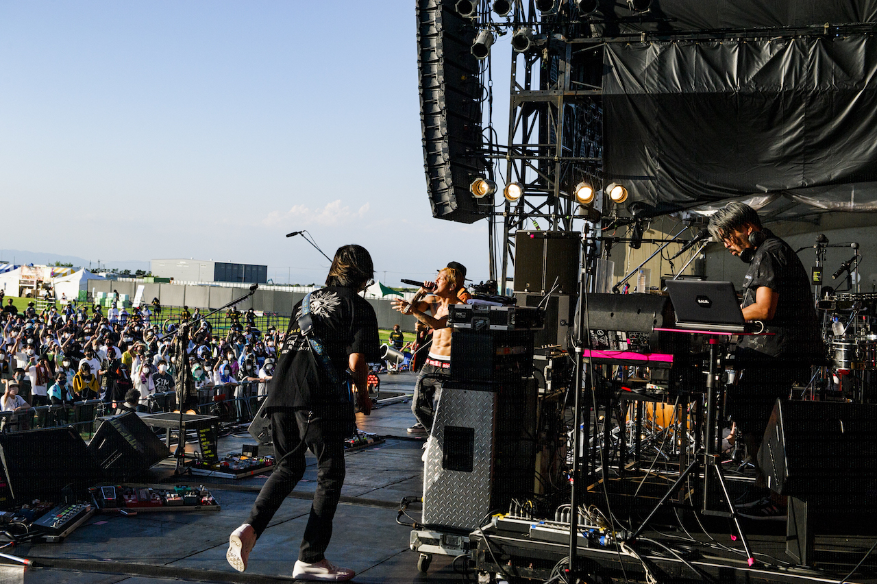 「未だ革命前夜!」。そう告げた後に披露された最後の曲は歓喜の歌「Viva la revolution」だった。逆境と葛藤の中、直前まで地道な交渉と対策を重ねて開催にこぎつけた『RUSH BALL』。そして、その決意に共感したすべてのバンドマンたちと、ストイックに音楽を楽しむ目の前の観客たち。どんな絶望や悲しみの中でも、また何かを始めることを誓うその曲に込められていたのは間違いなく、Dragon Ashというバンドの音楽とフェスへの真摯な愛とプライドだ。