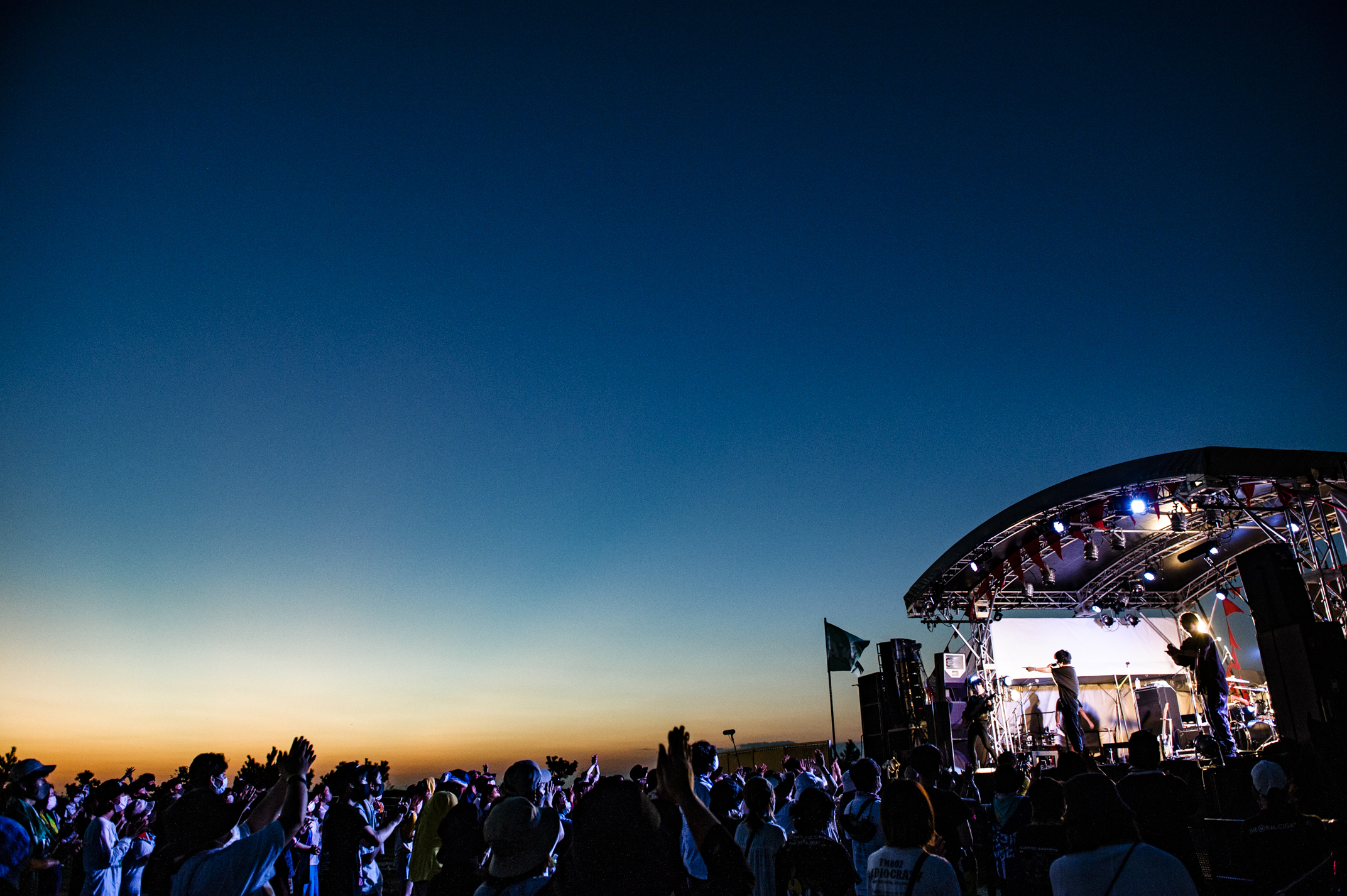しかも踊れるだけじゃなく、ストーリー性がしっかりと感じられるのもいい。続く「胡蝶蘭」では、哀愁漂う詞世界を歌う柳田の歌声が夜空へと変わりゆく空の色と絶妙にハマっていく。景色がバンドに味方した、そんな瞬間を体感したようにも思う。