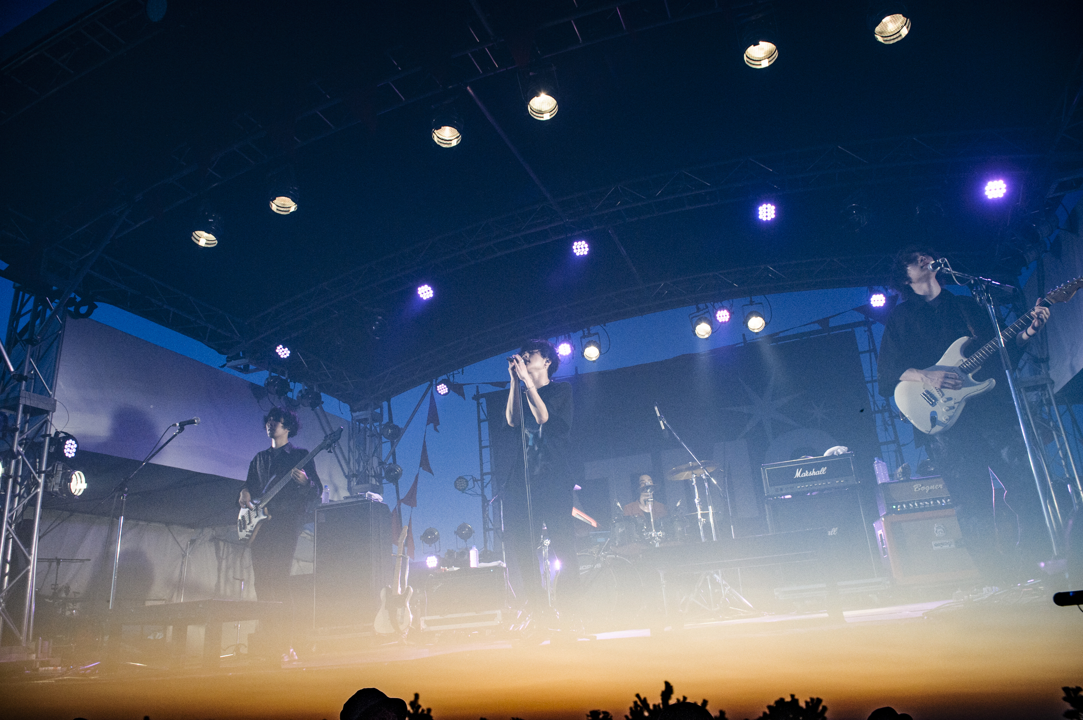 SNSやYoutubeの音楽チャンネルなどで話題となった「夜永唄」では美しい音色、吐息さえ色付いて聴こえる歌声、全てが心地よく、4人が鳴らす音にどっぷりと全身を浸けこんでしまいたくなる。初出演でこんなにも『RUSH BALL』の空間にハマるとは……。