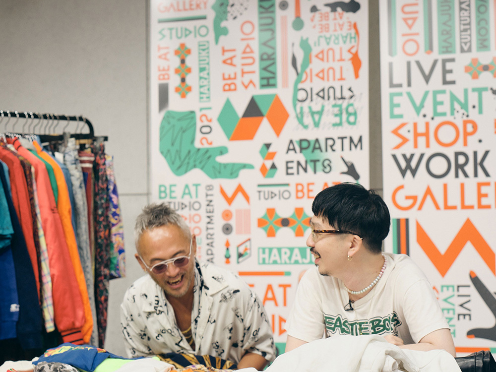 その第一回目のセレクターが公私ともに親交のあるJQと高橋ラムダ。「THE TEEEE’S」をコンセプトに、彼らが一日かけて古着倉庫から実際に厳選した250点以上の古着が期間限定でBE AT STUDIO HARAJUKUに並ぶ。また、彼らがデザイン監修した限定のスーベニアTシャツが発売される。