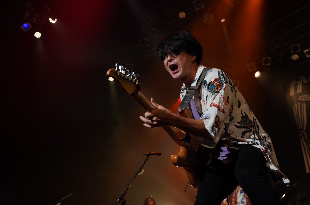 さらに《僕ら喜びを唄に変えるのは 届くことのなかった祈りのためさ》というラインが胸を打つギターロック「流星」、彼らの地元の歴史、この国との関係をまるでおとぎ話のように綴り、パーカッシブなビートに乗せた「シャララ ティアラ」を披露。豊かで自由な音楽性、そして、奥深く、真摯なメッセージを込めた歌を自然に共存させるセンスもまた、このバンドの魅力だと改めて実感させられた。