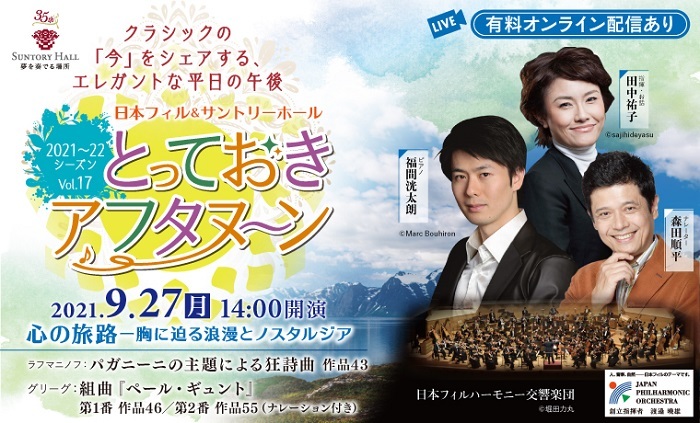 2021年9月27日(月)14時からサントリーホール大ホールにて、『日本フィル&サントリーホール とっておき アフタヌーン 2021~22シーズン Vol. 17』 が開催される。