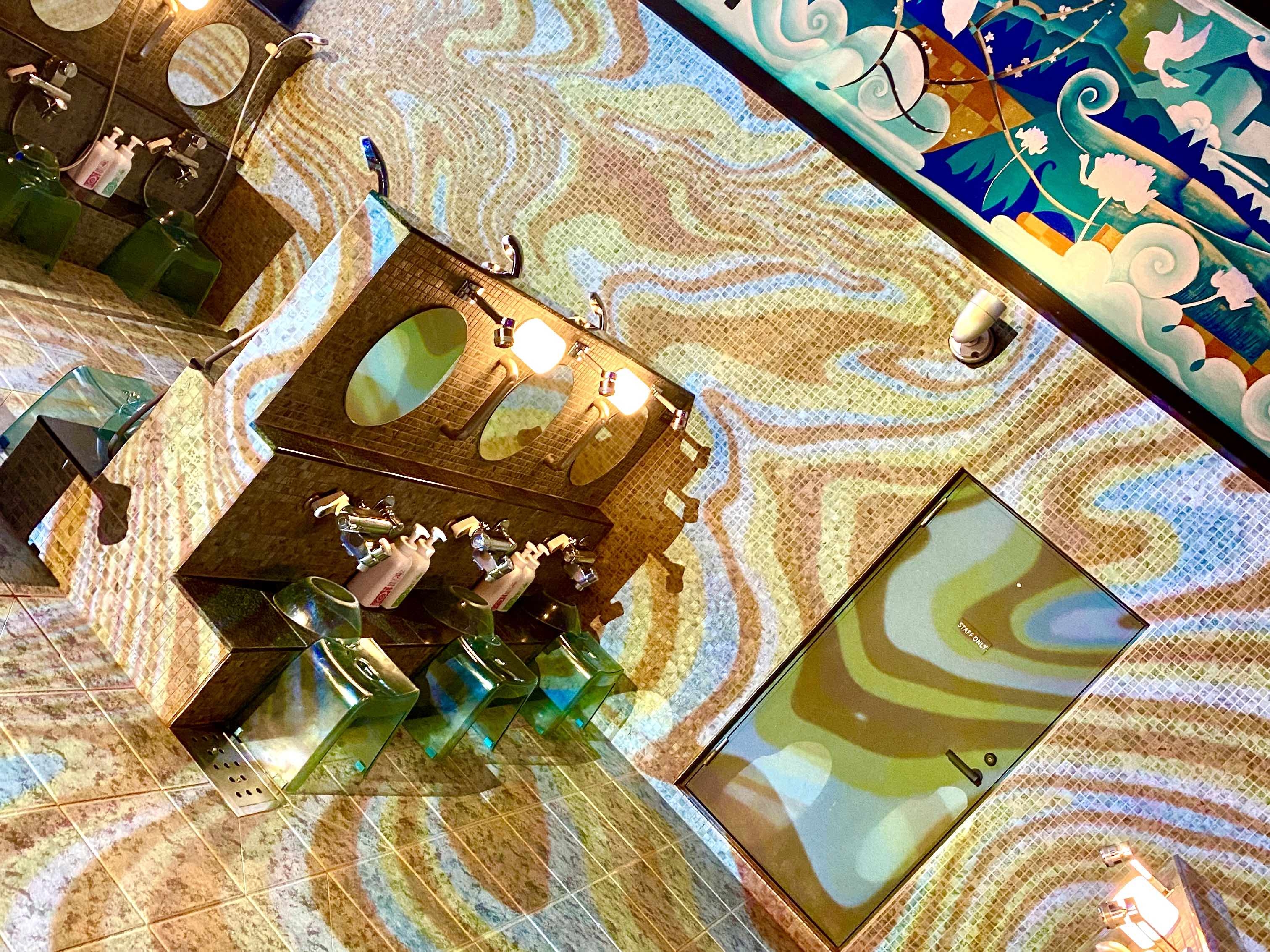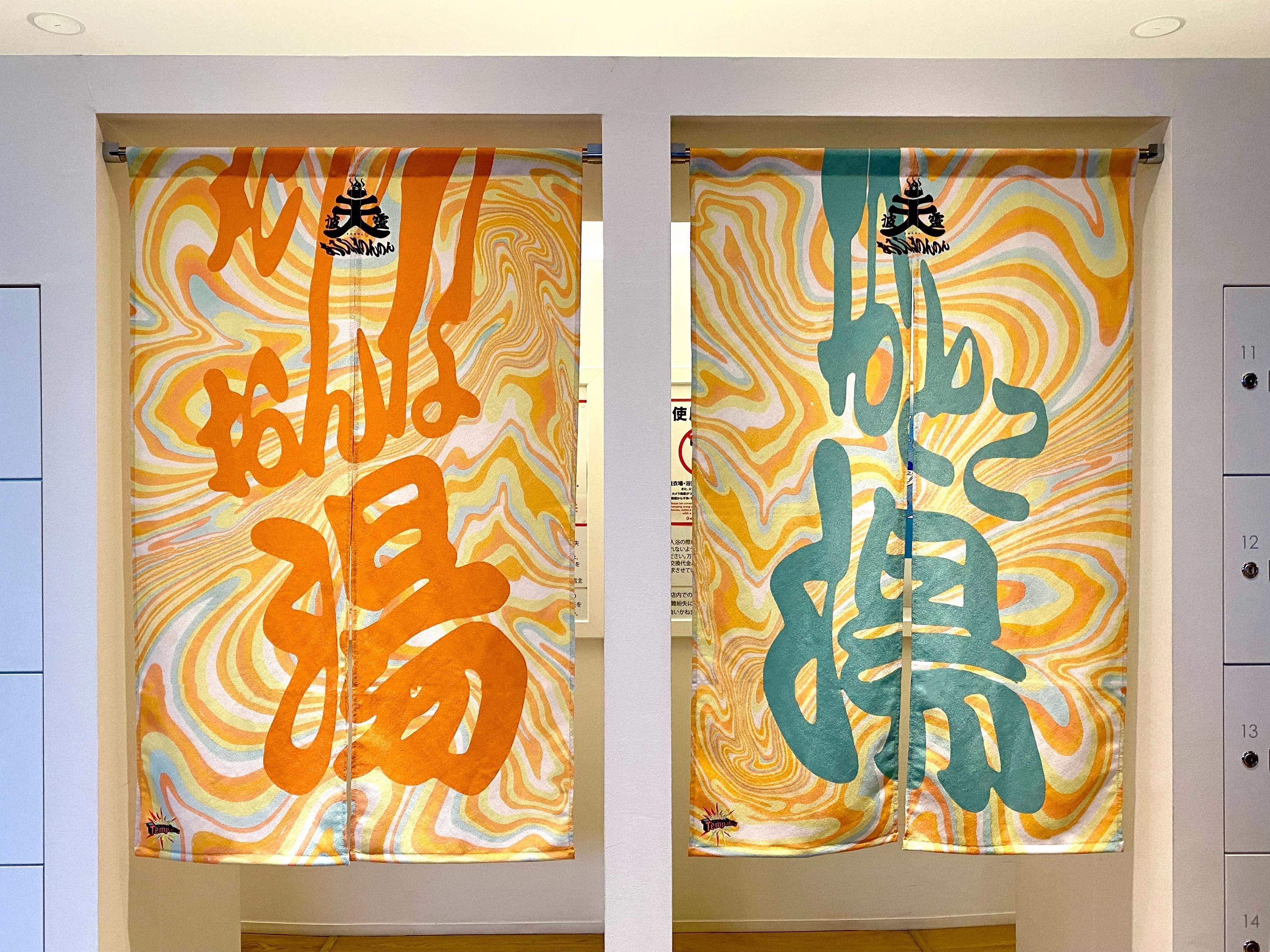 今回のコラボレーションでは、BGMがTempalayの楽曲でジャックされるほか、のれんをはじめ館内の装飾もTempalay仕様に。楽曲の持つ浮遊感とサイケデリックさを五感で楽しみながらととのうことのできる空間になっている。利用者には先着でオリジナルのうちわもプレゼントされ、うちわやポスターのデザインはCDアートワークも制作した森洸大(PERIMETRON / DWS / millennium parade)が担当。