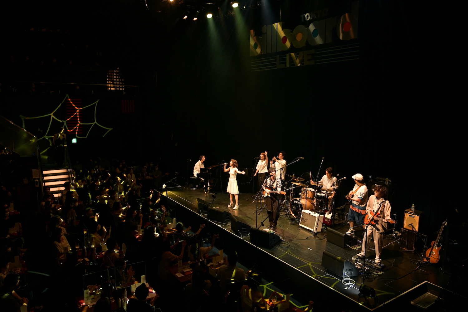 「初ビルボード楽しんでます!お客さんと近くて目が合う感じがいいですね!」と大島真帆(Vo)。この日の公演は有観客ライブとしては、バンド結成以来2度目だったという彼らだが、堂々たる立ち振る舞いでオーディエンスを惹きつける。「雨の日は映画のように」「夜と夢のはざまで」とオリジナル曲を立て続けに披露した後、かてぃんこと角野隼斗(Pf)のピアノ伴奏に合わせて浪岡真太郎(Vo/Gt)と大島真帆がカバー曲を披露するコーナーがあるなど、YouTubeでの活動にリンクする内容も盛り込まれていた。その後「Spotlight」「Stargazer」といったテンポの良い楽曲で高揚感を掻き立てると、続く「26時10分」で熱くソウルフルなパフォーマンスを披露。本編最後はこの日のライブに相応しいアース・ウィンド・アンド・ファイヤの名曲「September」で締めくくった。