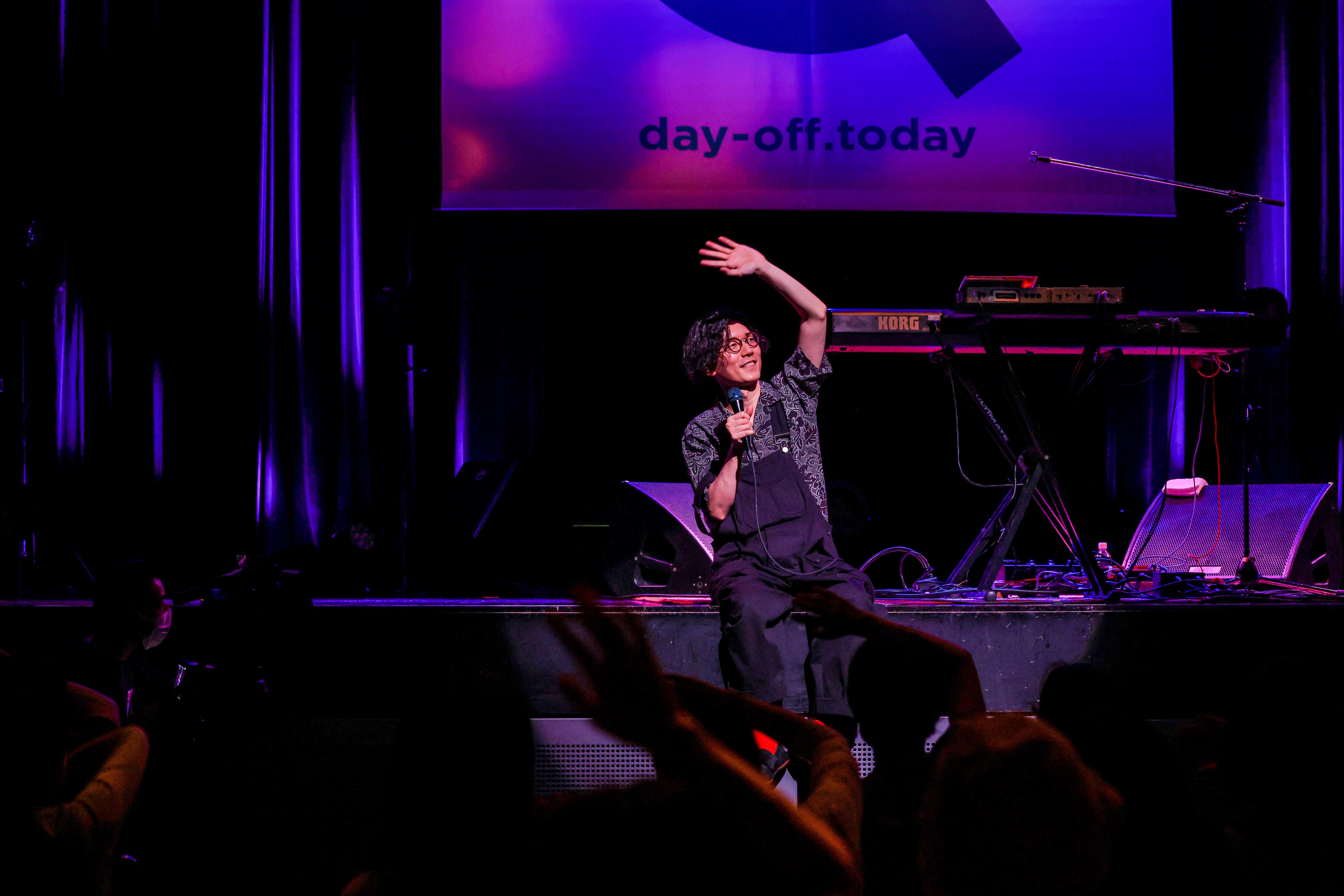 ラストナンバー「hanashi」は、同期のビートと共に壮大なサウンドが届けてくれる。キーボードで演奏をしていたが、途中で「やっぱり生ピアノが弾きたくなっちゃった」と移動したり、「助け合い」、「未来の話」、「また、どこかで会いましょうね」といったフレーズを即興で歌詞に散りばめたりと、最後まで自由な感じも素敵であった。「最後に一言だけ言わせて下さい」と言って、「御自愛ください」と別れの挨拶をしてからも、撮影カメラに向かってダブルピースをしたりと、最後の最後までサービス精神たっぷりで、また、ゆっくりとライブを観たいと想えた素晴らしきトップバッター。