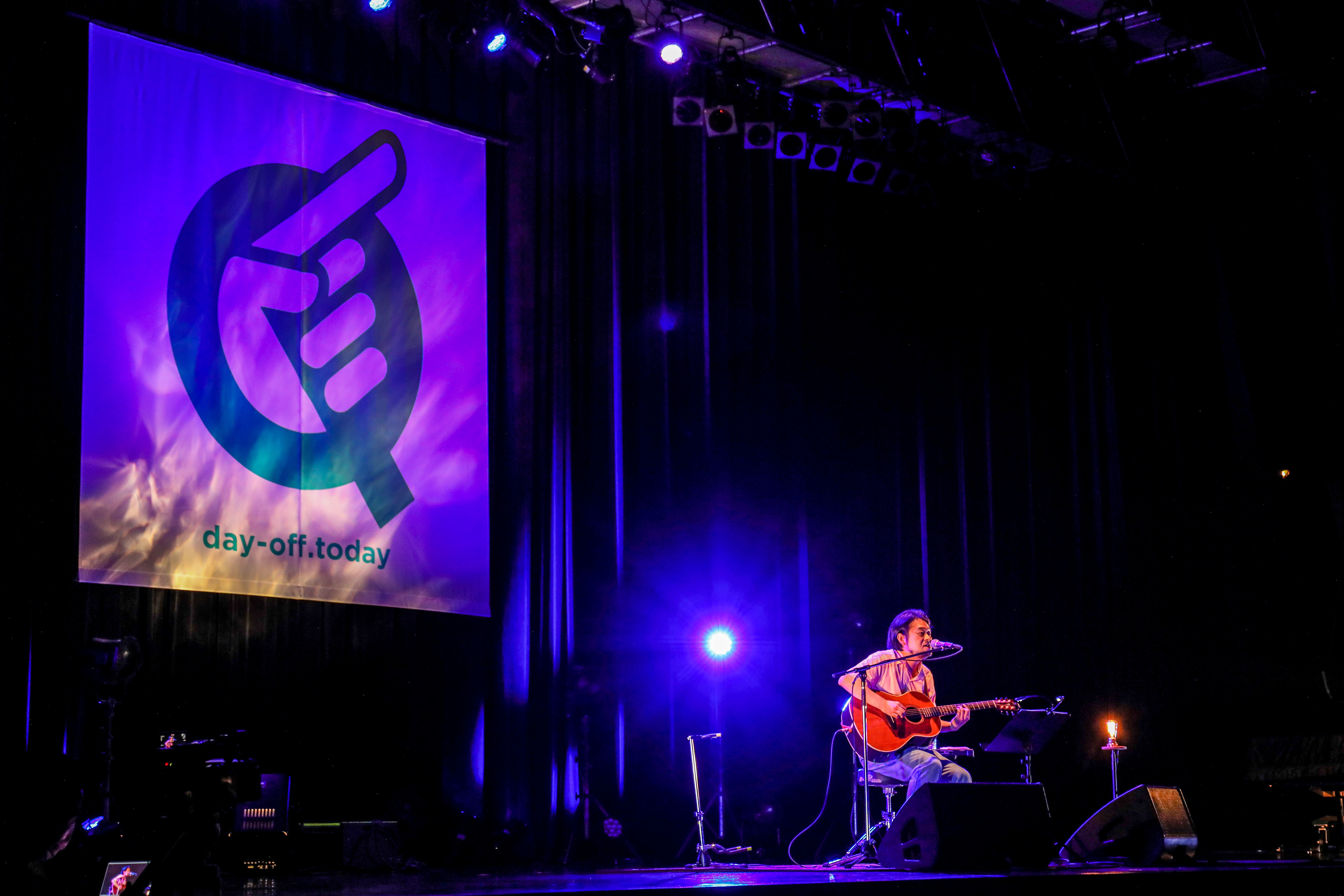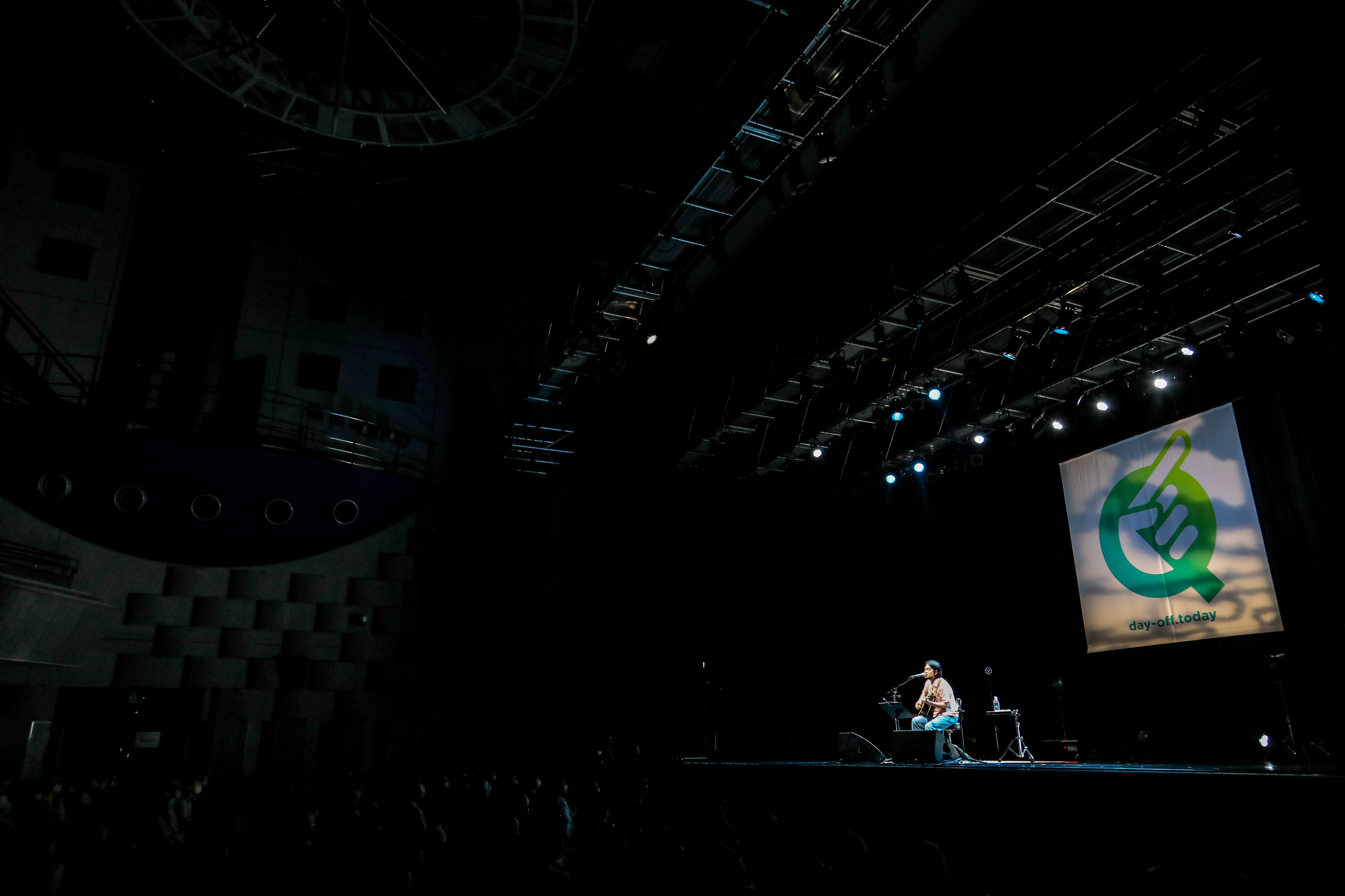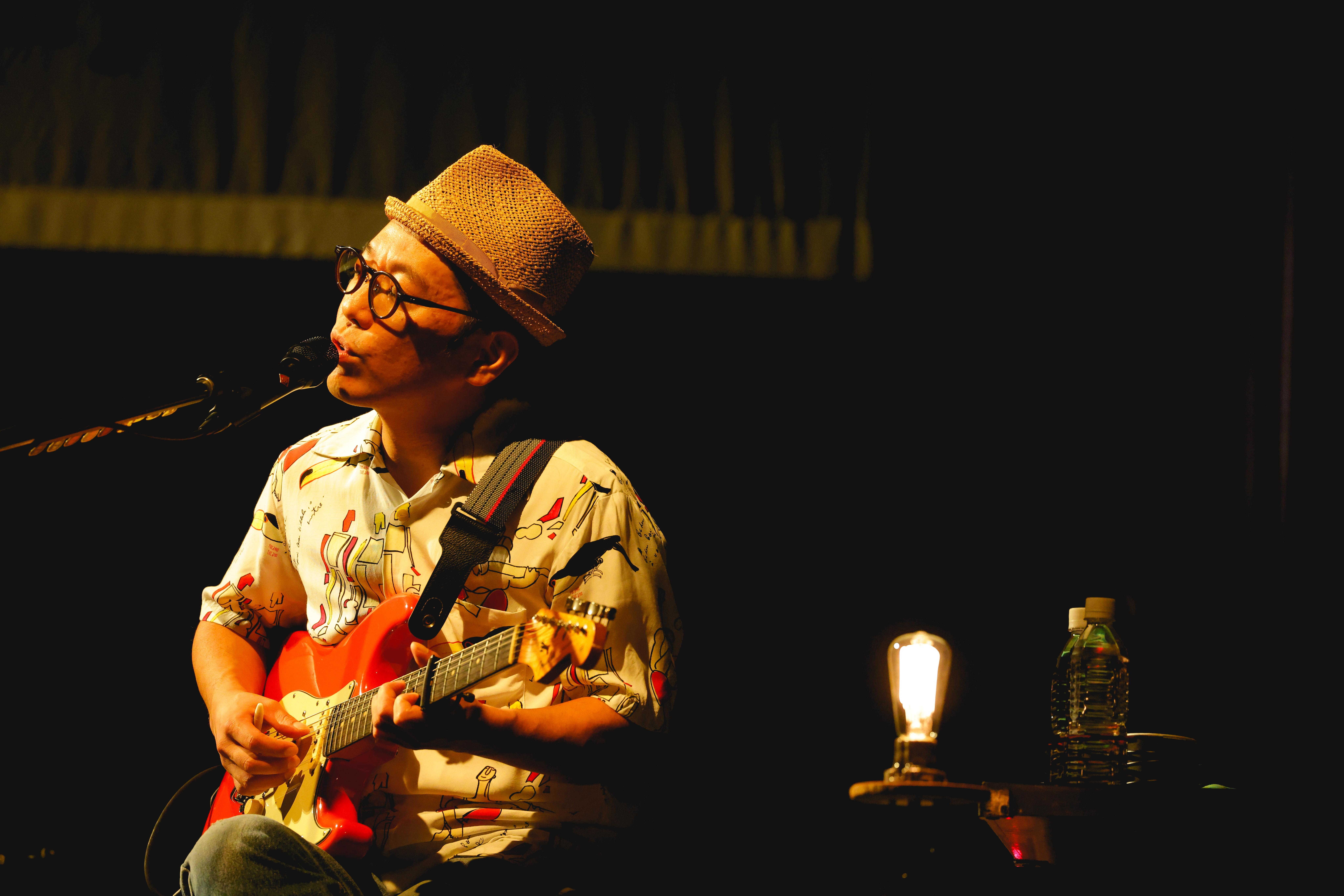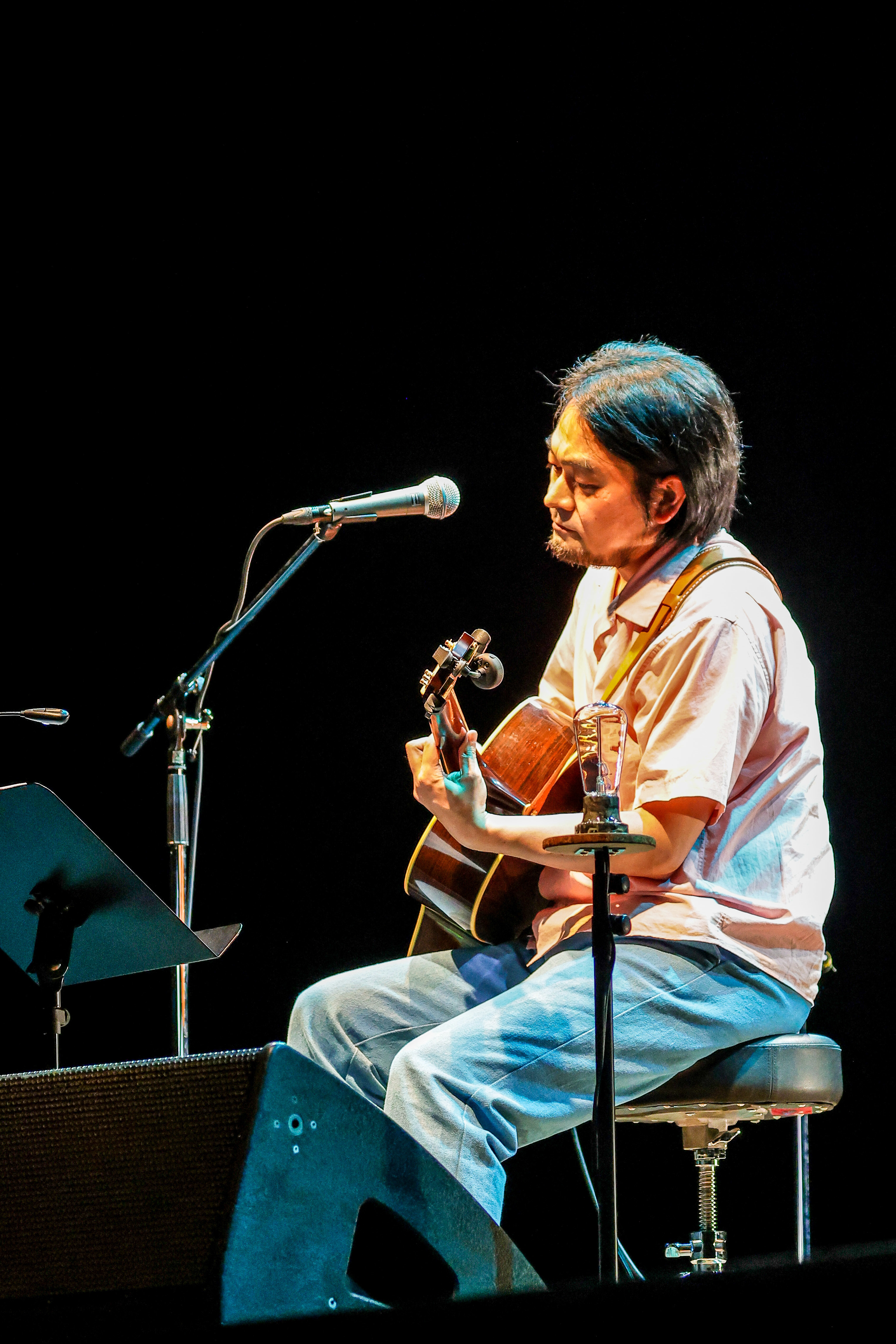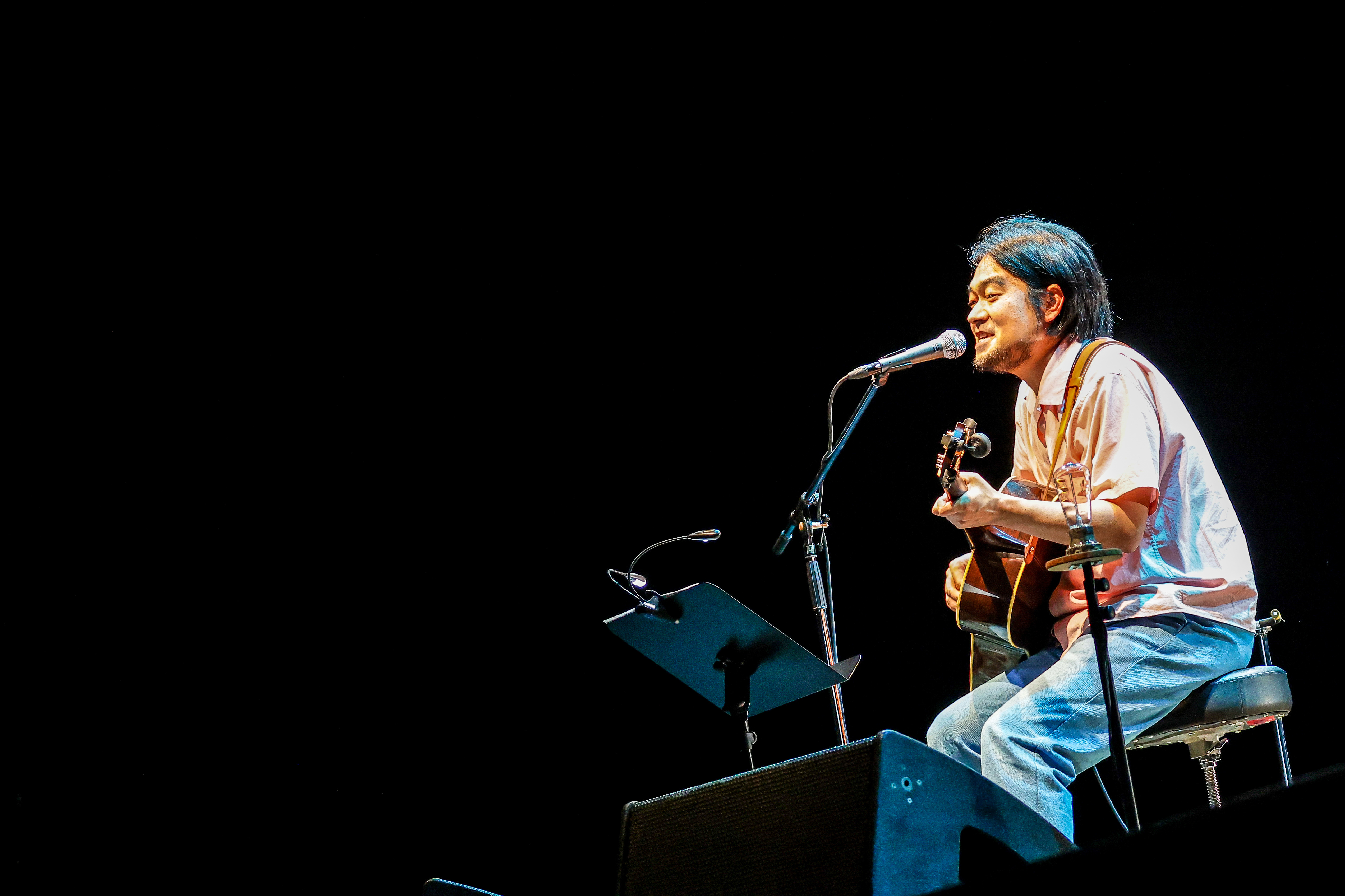 ラストは堀込泰行。「じゃあ、まぁ、ちょっとやっていこうかなと。お客さんが入っているのを見て、びっくりしているのか、安心しているのか、わからないですけど、案ずるより産むがやすしでやってみようかと」と飄々とマイペースで話しながら、アコギ1本で歌い出された1曲目は「光線」。終盤のハミング部分に魅せられ、この後どのようなライブが続くのだろうと楽しみになるが、そこは話し出すと、また先程までの飄々としたマイペースに戻っていく。今日ピックを忘れてしまい、永積のところに借りにいったものの「自分の好きなおにぎり型では無くティアドロップ型だった」とボヤいたりもする。でも、また先程の繰り返しで、2曲目「サンシャインガール」が歌われると、その独特なのどかさで気持ち良くなり、すっかりボヤキの事など忘れてしまう。