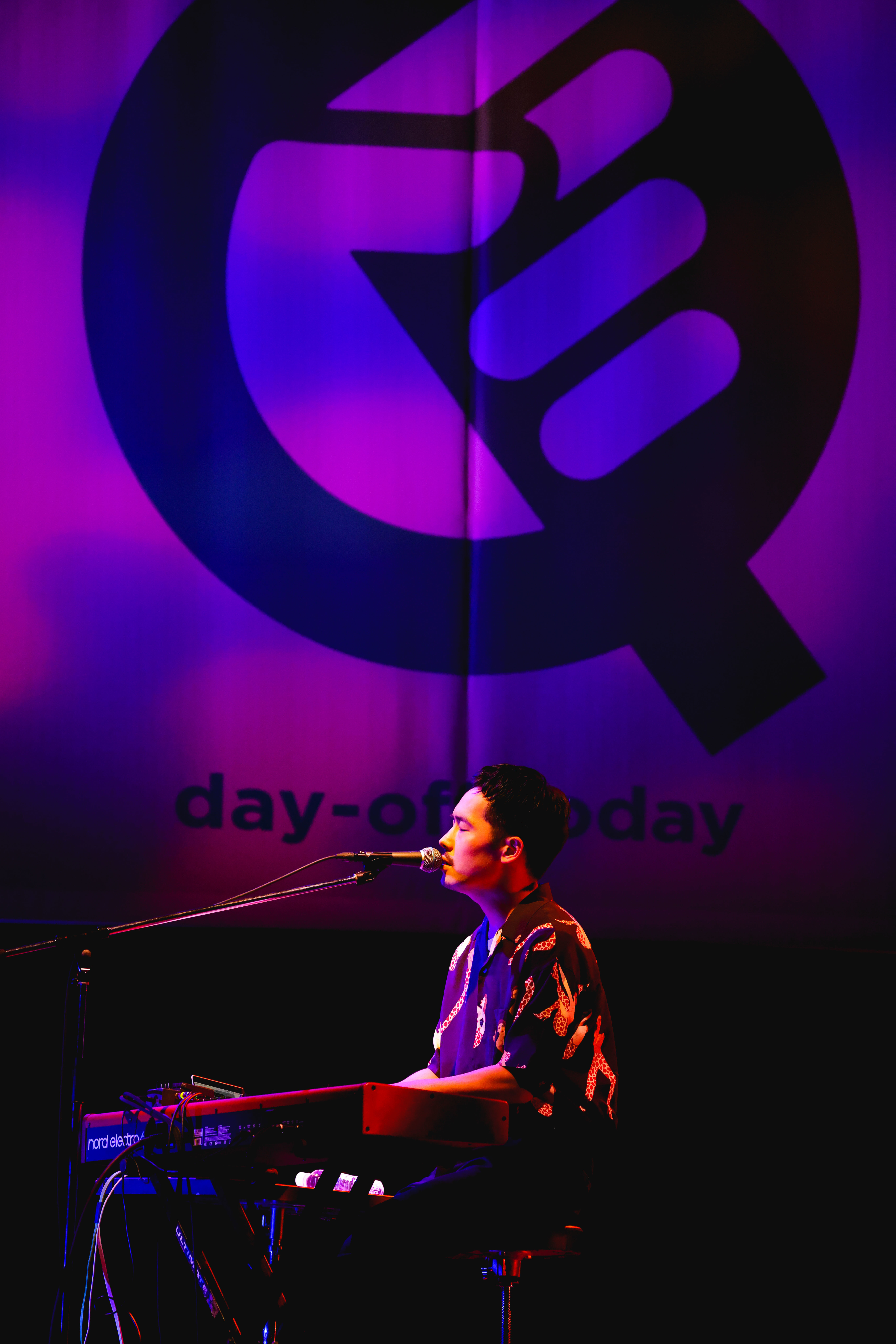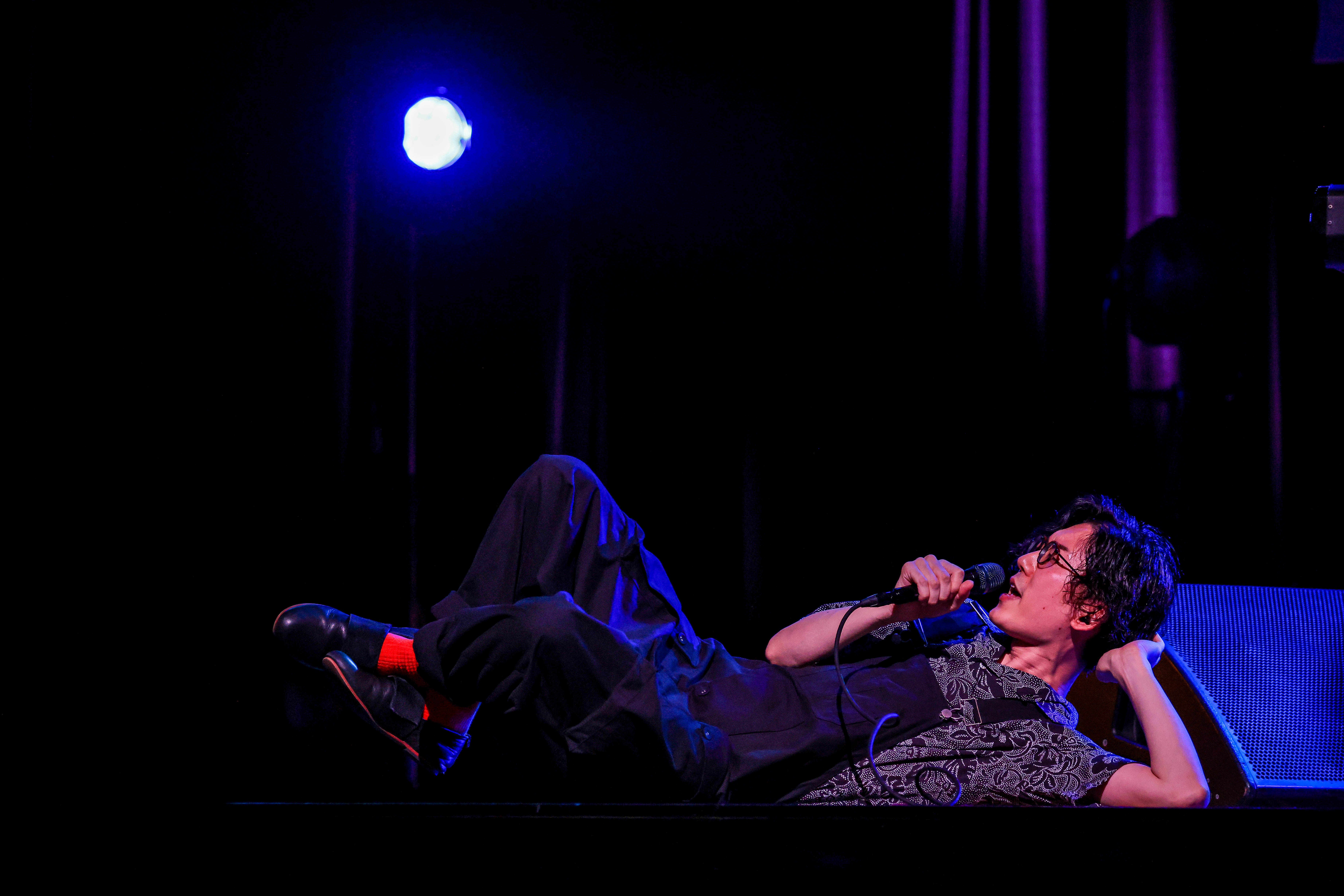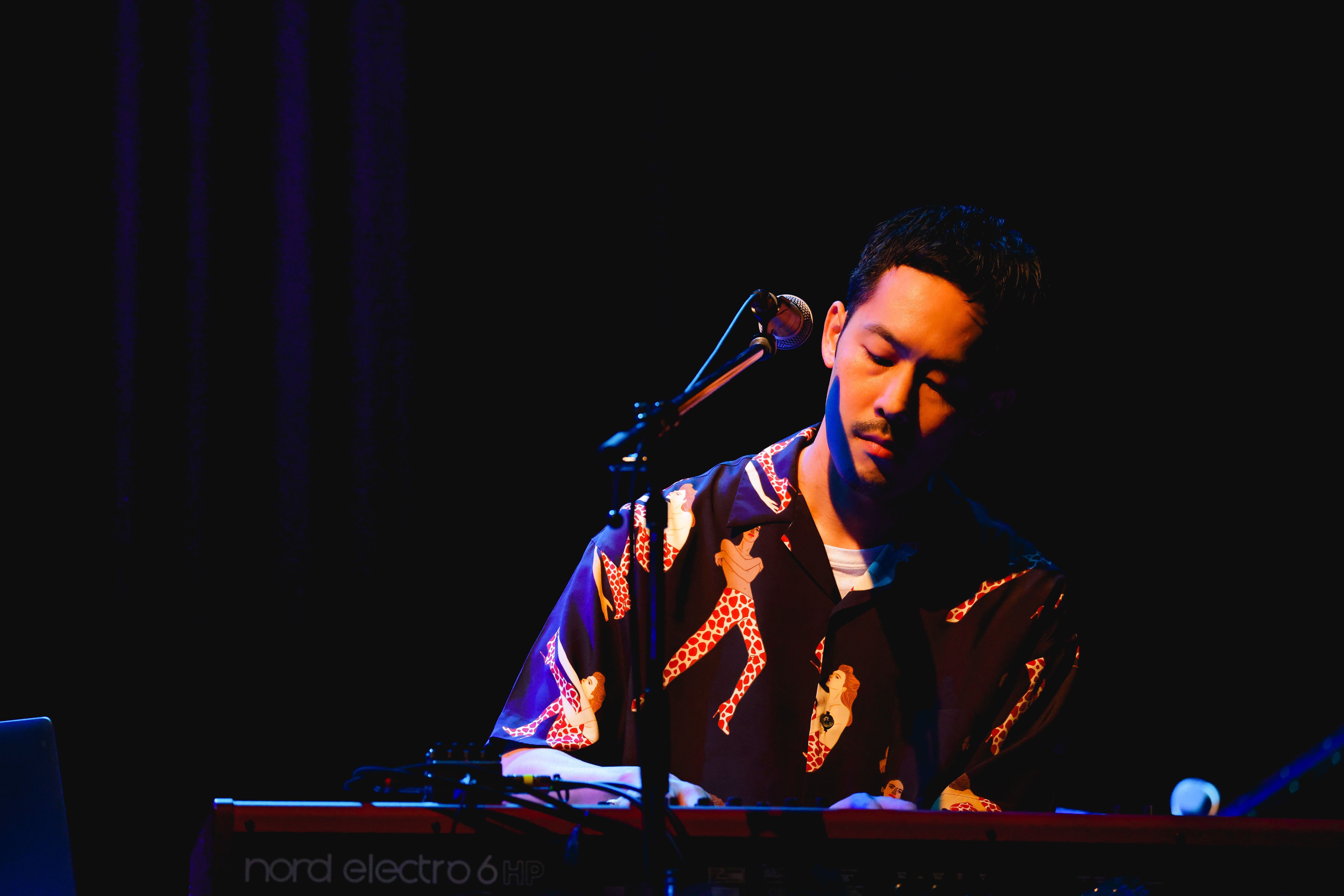 2番手はKan Sano。挨拶をしてから、「いきなりですが、水を飲んでいいいですか?! ドキドキしちゃって……」と一呼吸置いてからも、「ほぼ喋らずにやろうと思っていたけどTENDREさんも喋っていましたし。でも喋りが止まらなくなるので。ワンマンで1曲目が始まるまで20分喋った事があって、それ以来気を付けていて」などと、本当にドキドキしていた人なのかと思うくらいに矢継ぎ早に喋り出す。20分喋るのではと不安になるが、これまた延々と聴ける心地よさがある。だが覚悟を決め、客席に向かって正面に立ち、キーボードで<そばにおいでよ>と1曲目「My Girl」を歌い始めると一瞬にして空気を変える。リズミカルなビートで、声も遠くまで飛んでいく感じで、当たり前だが枕の喋りとは全く違う最高の心地よさがある。
