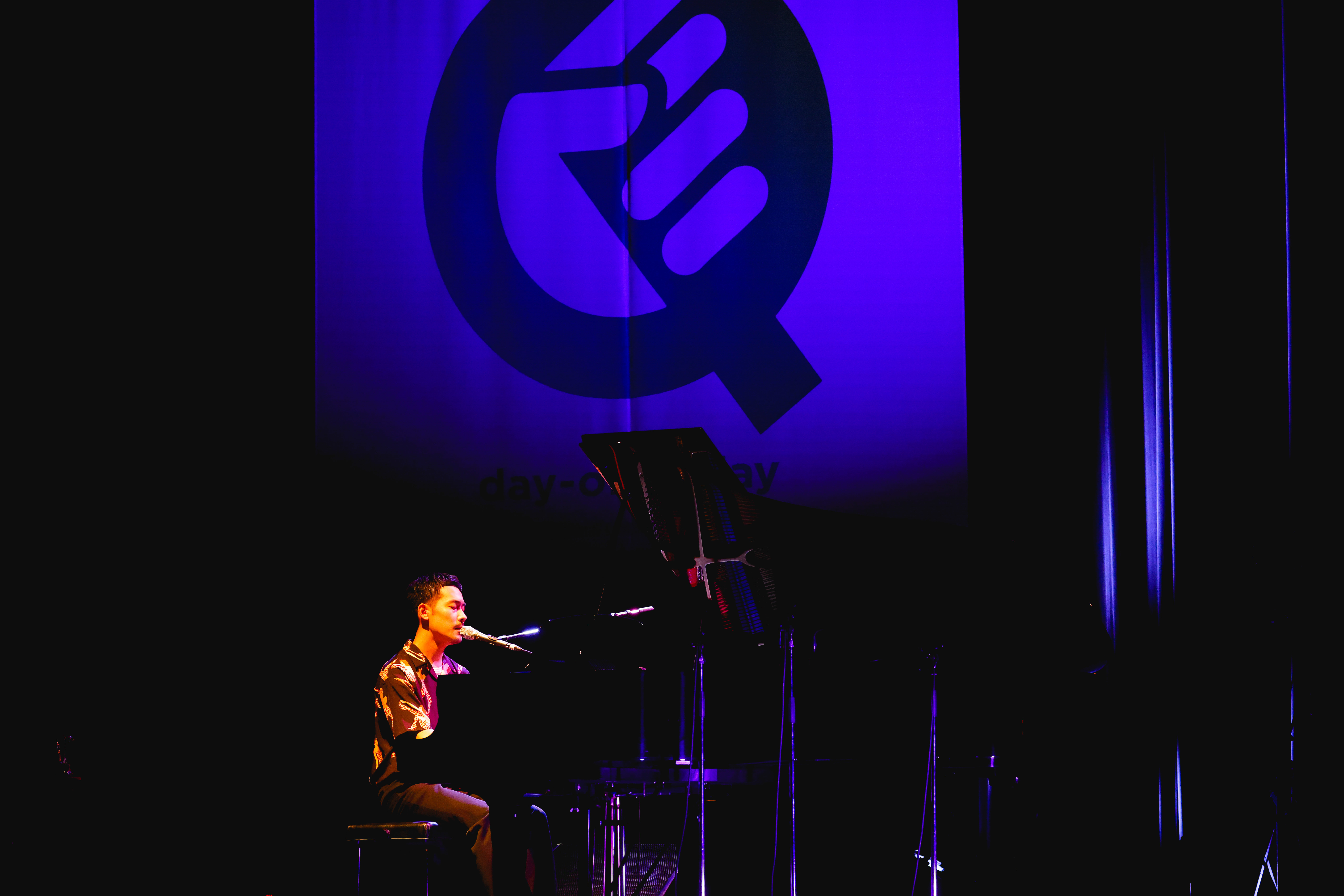 弾き語りが充分に堪能できる『BABY Q 納涼祭』が凄く好きだとも話して、キーボードから横に置かれているグランドピアノへと移動する。ドビュッシーの「月の光」を軽く弾いた後に「HOPE」へ。キーボードとは、また違う力強さを感じた。続く「GIVE」を披露した後に「この度はありがとうございました!」と茶目っ気ある感じで挨拶をするのも良かったし、そこから「色々な事がありますが助け合っていきましょう。これからも仲良くして下さい」とさらっとメッセージを伝えるのも粋だった。
