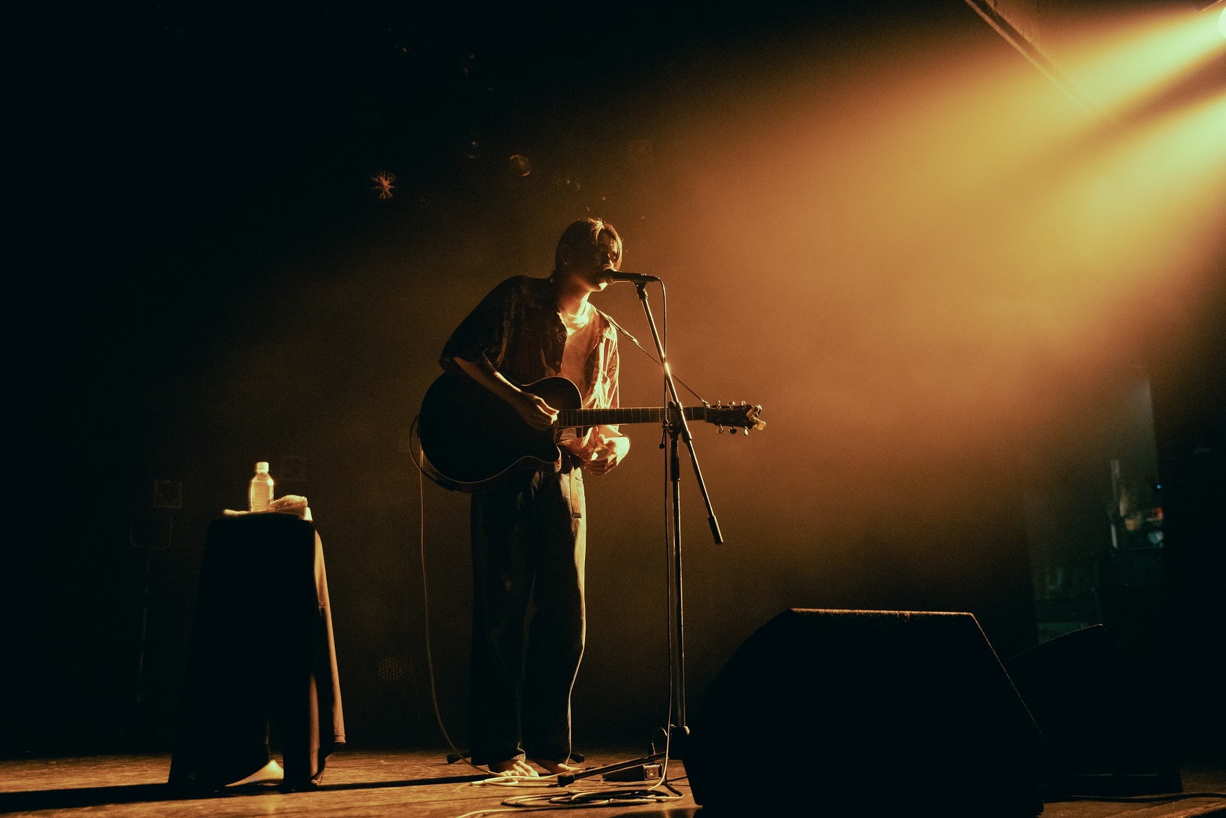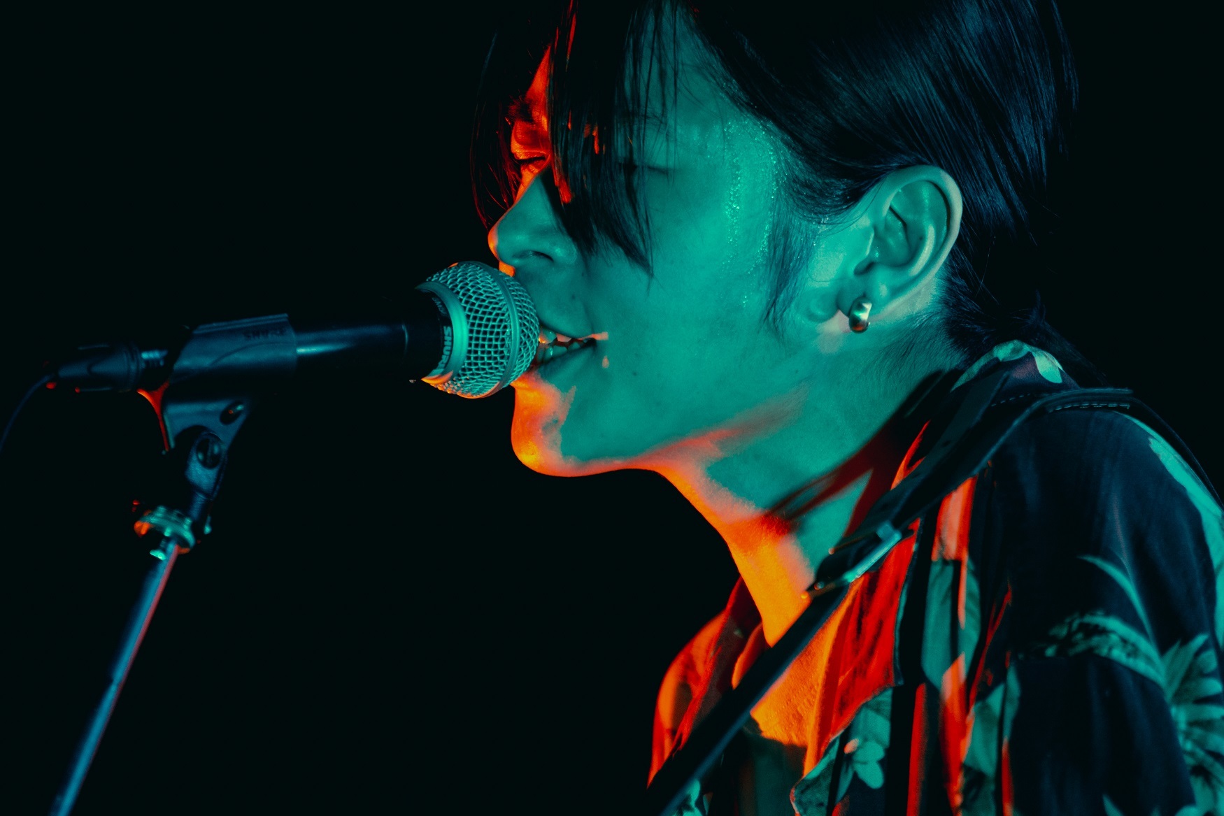 半年前のワンマンと比べても明らかに成長した演奏技術と表現力で、1曲目から観る者の心をガッツリ掴んだ小林。観客が惜しみない拍手を送ると、「ありがとうございます。え~、久々にグッズを作りまして」と、余韻を残す間もなくMCが始まる。何ごとも無かったかのような緩い空気が会場を包み、安堵のような、やれやれと言ったような表情を浮かべる観客。この緊張と緩和が計算だったらちょっといやらしいくらいだけど、これこそが彼のスタイルであり、狙いもてらいもない彼の自然体。「……って、いつまでも曲やらなそうだな」と長尺すぎるトークを自分で笑うと、ようやく曲へ。健康を患う「HEALTHY」で綺麗なばかりじゃない自然体を鳴らし、「リブレス」で心地よいグルーヴやうねりを生み出し、「スープが冷めても」のゆったりした曲調に感傷的かつ憂いある歌声で観客を魅了する。