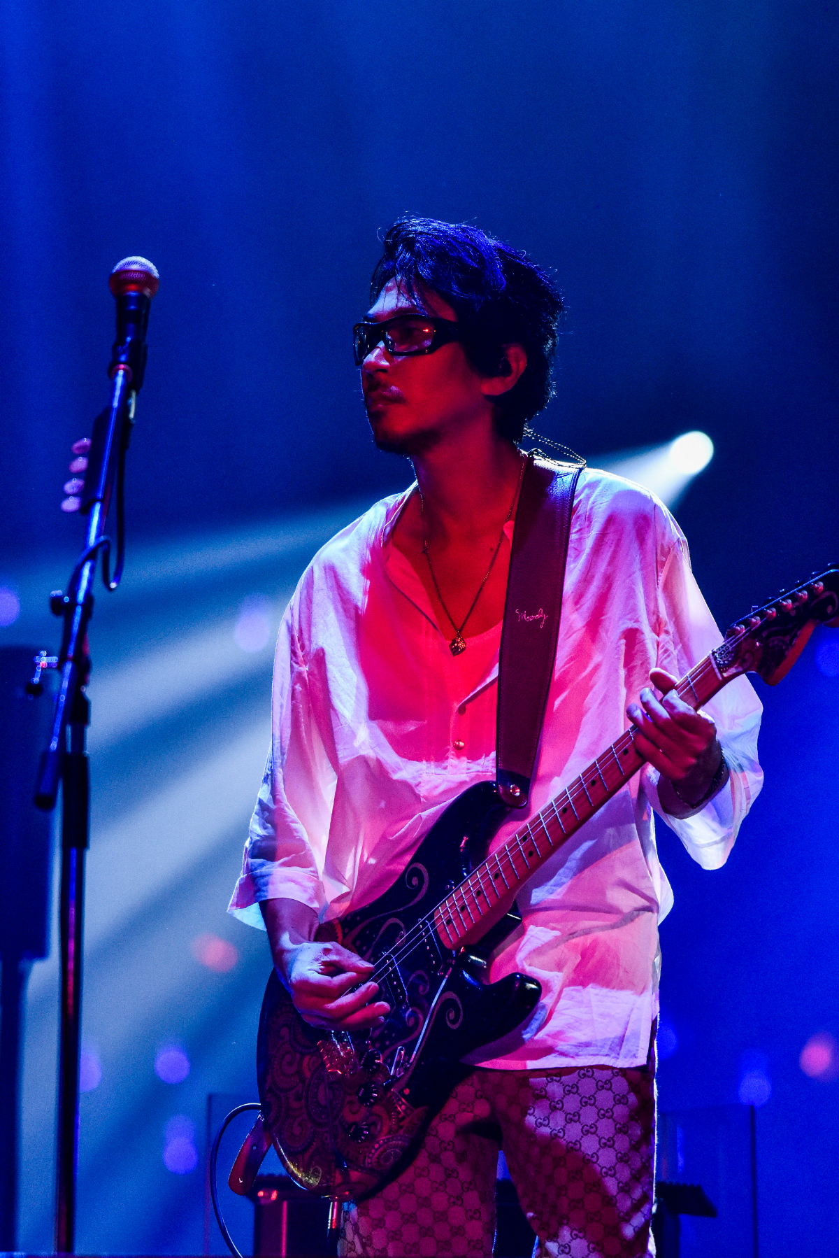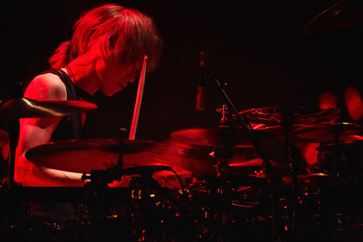 四方に花道を伸ばす円形のセンターステージは、多くの観客が真正面かつ近い距離感でライヴを体感できる、ファンにとってうれしい演出。ドラムをプレイするyukihiroの後姿を観られるのも、足元を含め細部の動きを目の当たりにできるのも稀な機会である。ステージの形状自体は一見すると『ARENA TOUR MMXX』と変わらないが、ライヴが始まって驚いたことに、回転スピードが高速化したり、内周と外周が逆方向に行き交ったりするなど、機能が大幅にヴァージョンアップしていた。「REVELATION」などではhydeとtetsuyaが共に外周に乗り、高速回転にも怯むことなくジャンプしたり寝そべったりと大胆にパフォーマンス。内周では、土台をしっかりと守るようにkenとyukihiroが呼吸を合わせてプレイ。また別の場面では、3人が内周にいて一人がどこかの花道へと自由に出向いていることがあり、フォーメーションは刻々と変わっていき、観たことのない景色を360度全方位から見守るファンの眼前に立ち上げていく。動きを追うだけでも純粋に楽しく、まるでアミューズメントパークでアトラクションに参加しているかのように錯覚する瞬間があった。