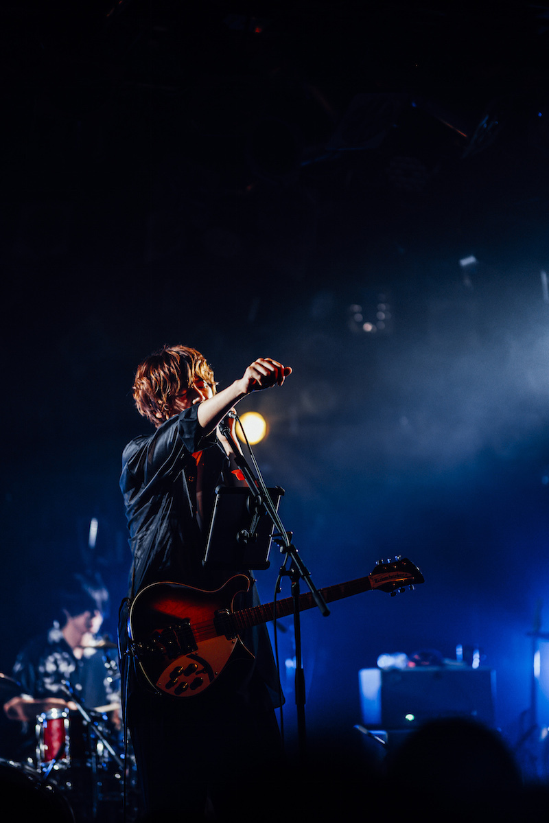 ここで前半が終了。MCでアルバム『気配』のツアーがまだできていないことに触れ、周年ツアーだがアルバムの曲も届けたいという話をすると、表題曲の「気配」から後半を始めた。「気配」はコロナ以降の世相を強く反映した曲だが、“2020年を思い出す”というよりも“今の曲として向き合う”という温度感にならざるを得ないのは、諸々の状況が改善したと断言できない現状があるからか。白熱する楽器隊にカナタのファルセットが絡み、膨れたサウンドがサッと止むと、「ドドッ……」という吉田のキックから「Spark in the end」へ。さらにカナタの弾き語りから「あなたがいればいいのに」が始まり、喪失や、その先を生きていく人の悲しみ・祈りを唄う曲が続けて届けられた。それにしてもベストコンディションで演奏される名バラード「あなたがいればいいのに」は最高だ。カナタの透き通った歌声はとてもよく伸びているし、ギターソロが牽引する間奏のロックな展開も痛快。そして最高潮の盛り上がりとともに迎えるラスサビよ………! 最後の一音まで大切に届けると、完全に照明が落ちたタイミングでフロアから拍手が起こった。
