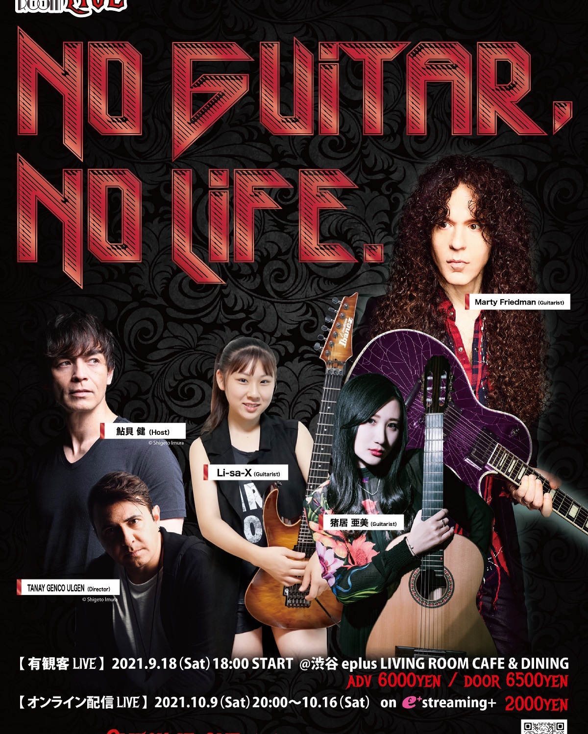 9月18日(土)にeplus LIVING ROOM CAFE & DININGで開催される『リビングルーム・ライブ「 No Guitar, No Life 」』は、世界的なスーパーギタリストのマーティ・フリードマン、超絶テクで注目を集める若き天才Li-sa-X、数々のコンクールでの受賞を重ねている人気クラシックギタリストの猪居亜美が出演する。