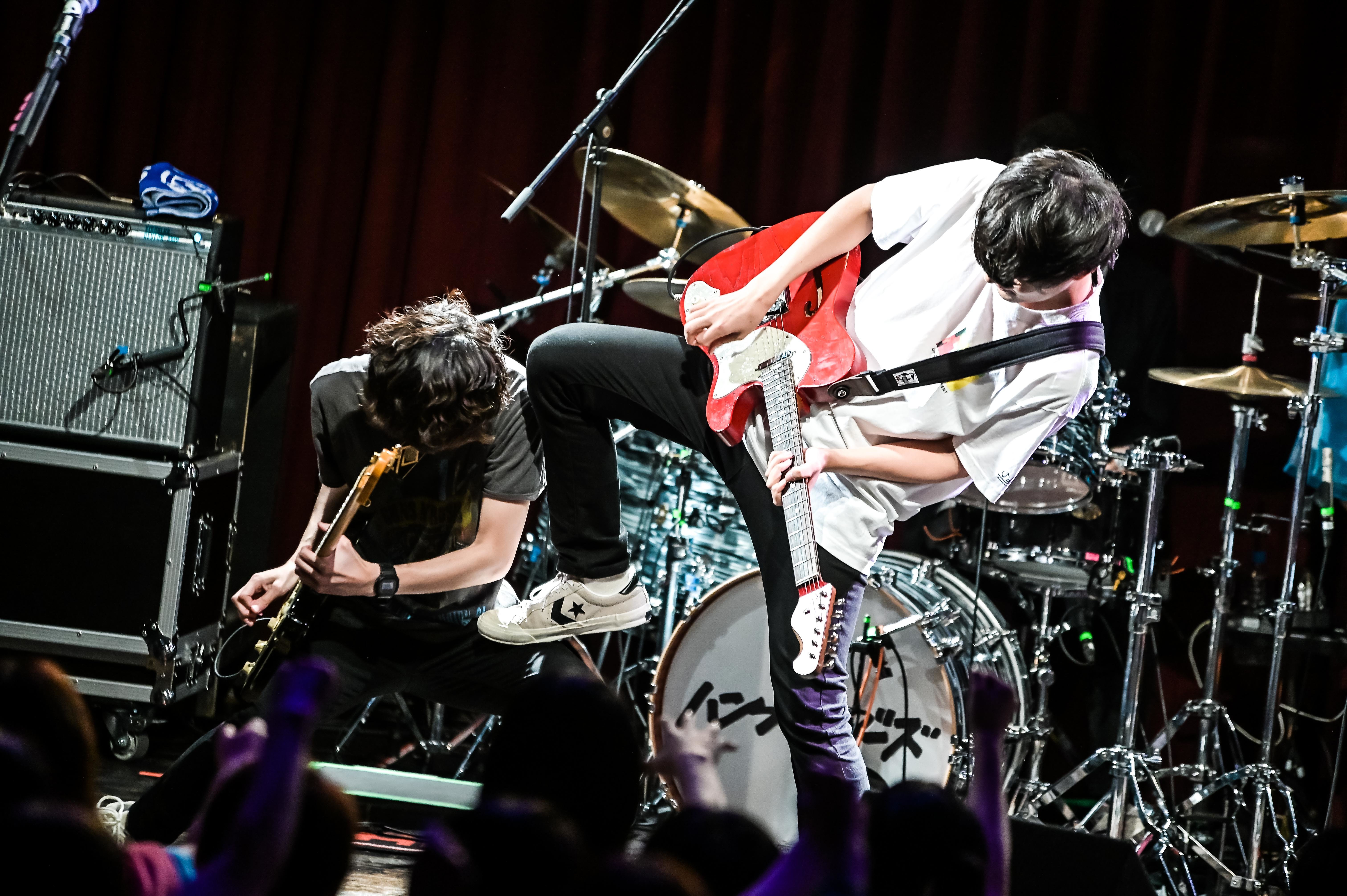 梅田サイファーへのリスペクトと、ロックバンドとしてのプライドと。「ワールドイズマイン」では、ハンブレッダーズがなぜ愛されるのか、なぜ生き残るのか――その全ての理由が刻まれたような最大級のエモーションを創出。「ロックンロールは全ての音楽の中で、一番弱虫のためにある音楽なんだ!」とぶちまけた「弱者の為の騒音を」では、その口上からすでに感動マシマシで、ムツムロが終始絶賛し続けた梅田サイファーのライブが生み出した巨大な熱量を、さらに拡大させるような怒濤のパフォーマンス。そして、「KZさんが良いねと言ってくれた曲を」と最後に捧げたのは「銀河高速」。ロックバンドの無敵感をたたえたこの曲を聴いていると、ハンブレッダーズとまだまだどこまでも行ける気がしてくる、最高の景色をもっともっと見られる予感がする。