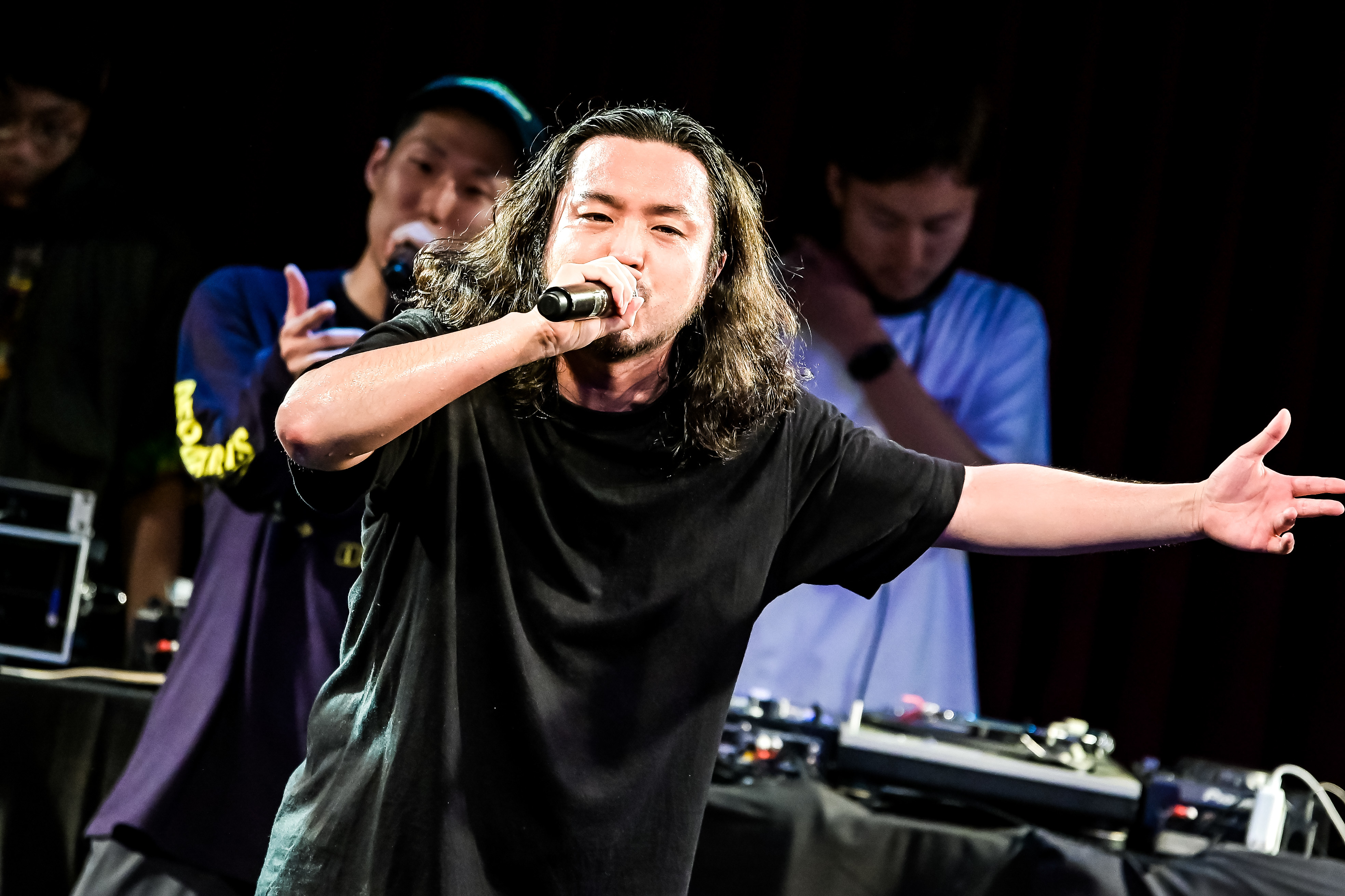 板の上も下も関係なく会場中の同志がその人差し指を天に捧げた「NO.1 PLAYER」では、ピュアな情熱を秘めたメロウな楽曲にひときわ胸をつかまれる。「最後は<また会いましょう>という曲です。良かったら一緒に揺れていってください」(KZ)と放った「いつかまた」でエンディング。音楽には、ヒップホップには、こんなにも力がある。その懐の深さと愛を存分に感じさせた、胸いっぱいのエンディングを迎えた梅田サイファーのライブだった。