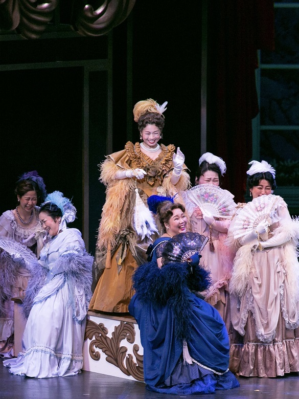 ソプラノ山田知加(中央青いドレス)オペラへの招待「こうもり」(2020.1びわ湖ホール中ホール) 写真提供:びわ湖ホール