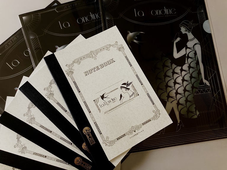 ―― おお、これこそ「ツバメノート」ですね。「ツバメノート」は学生時代から愛用しています。金箔の記号みたいのが高級感を醸し出していて好きなんです。見事にオペラ『つばめ』とのコラボレーションの成功じゃないですか。せっかくなので、後で園田さんにチラシと一緒に持って頂きましょう。園田さん、ツバメノートはご存知ですか?