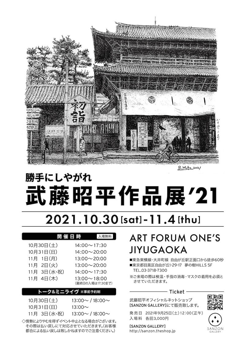 武藤昭平(勝手にしやがれ)による個展『SYOHEI MUTO GALLERY '21』が10月30日(土)から6日間、東京・自由が丘のART FORUM ONE'S JIYUGAOKAで開催される。