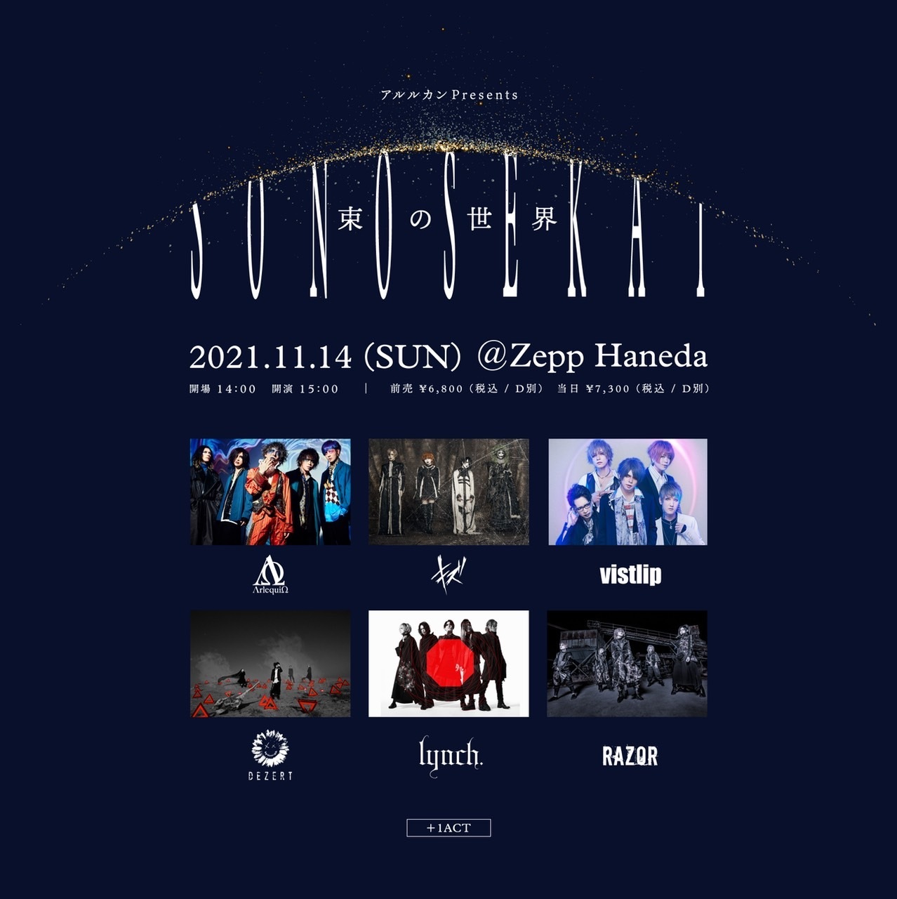 その意気に呼応したキズ、vistlip、DEZERT、lynch.、RAZORの5組が、11月14日(日) Zepp Hanedaに集結することとなり、『アルルカン Presents「束の世界-SONOSEKAI-」』と題して開催されることになった。