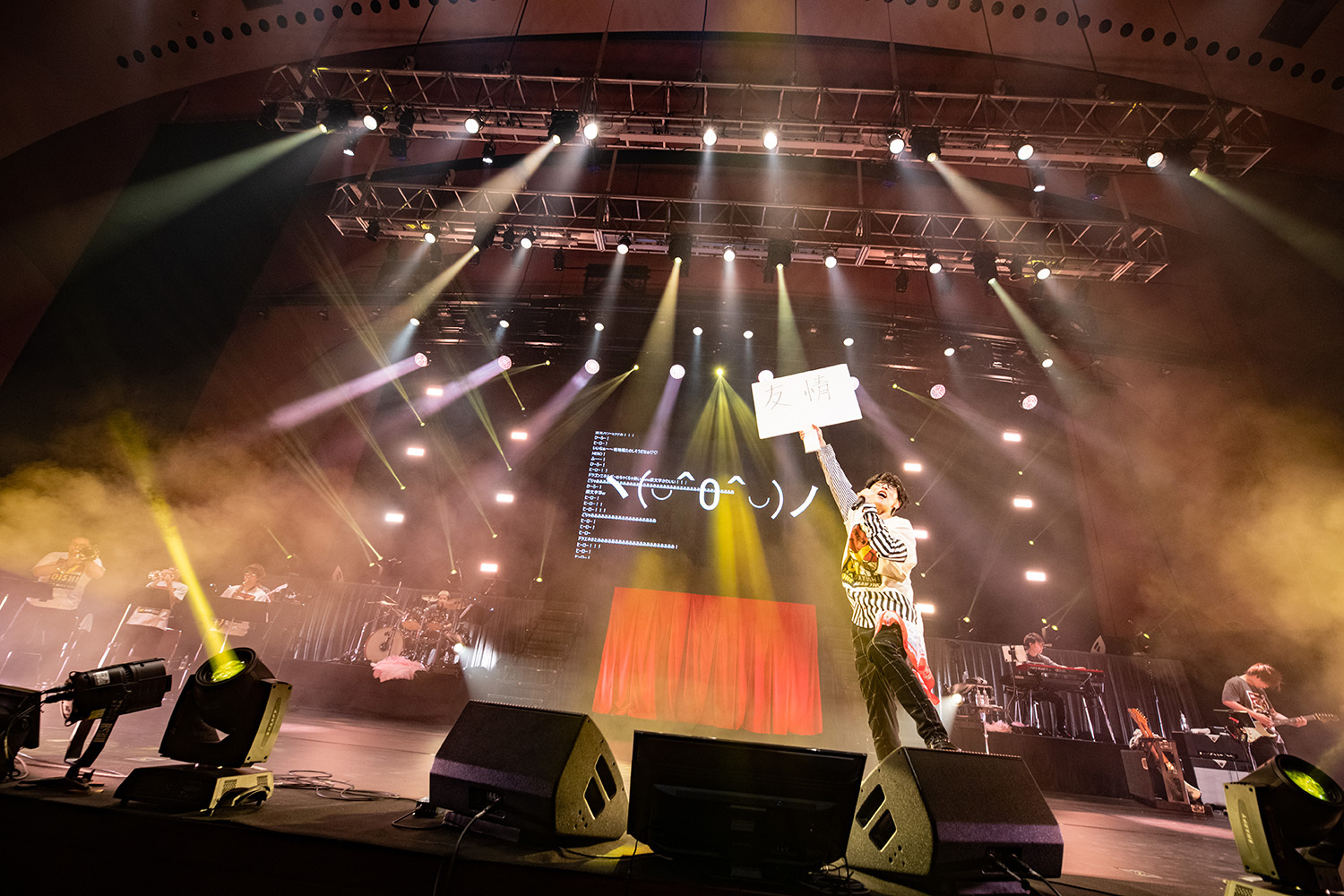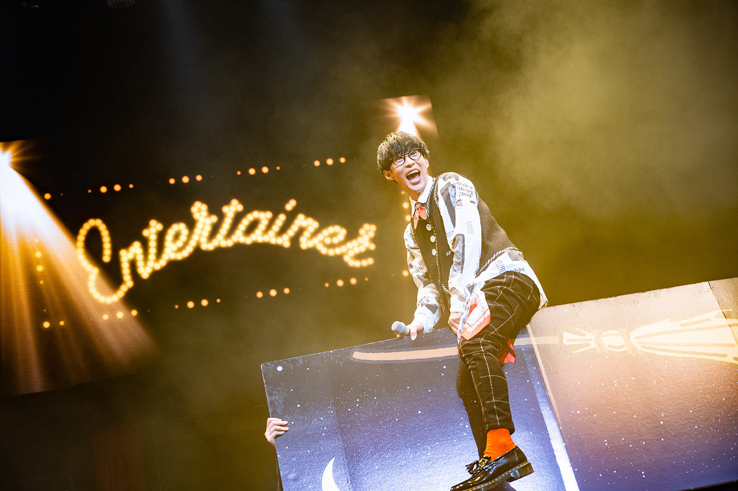 自称・アニソン界のおしゃべりクソメガネ”ことオーイシマサヨシ。大石昌良としての活動とは別に、2014年から様々なアニメ作品への楽曲提供、主題歌の歌唱のみならず司会業や俳優としても活躍してきた7年を経て初となるアルバム『エンターテイナー』を8月25日に発売した。そして9月19日には同じく『エンターテイナー』と銘打ってパシフィコ横浜でワンマンライブを開催。自ずと観る側のハードルも上がってしまうこのタイトルから、彼はどのようなライブを作り上げたのか。その模様をレポートする。