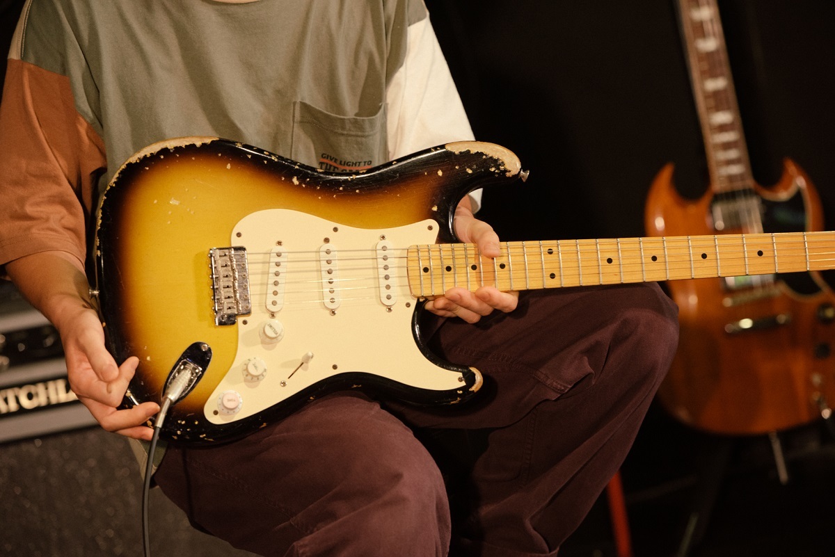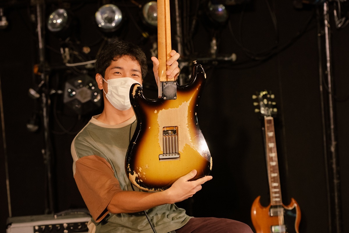 高坂:自分でやっちゃいました。ビンテージのボロボロのギターに憧れていて……2年くらいは綺麗なまま使っていたんですけど、大学のサークルの後輩にレリックとか好きなやつがいて、そいつがドリルを持っていたので、ドリルの先に石をつけて、回転させて、摩擦で削りました。お気に入りのギターです。