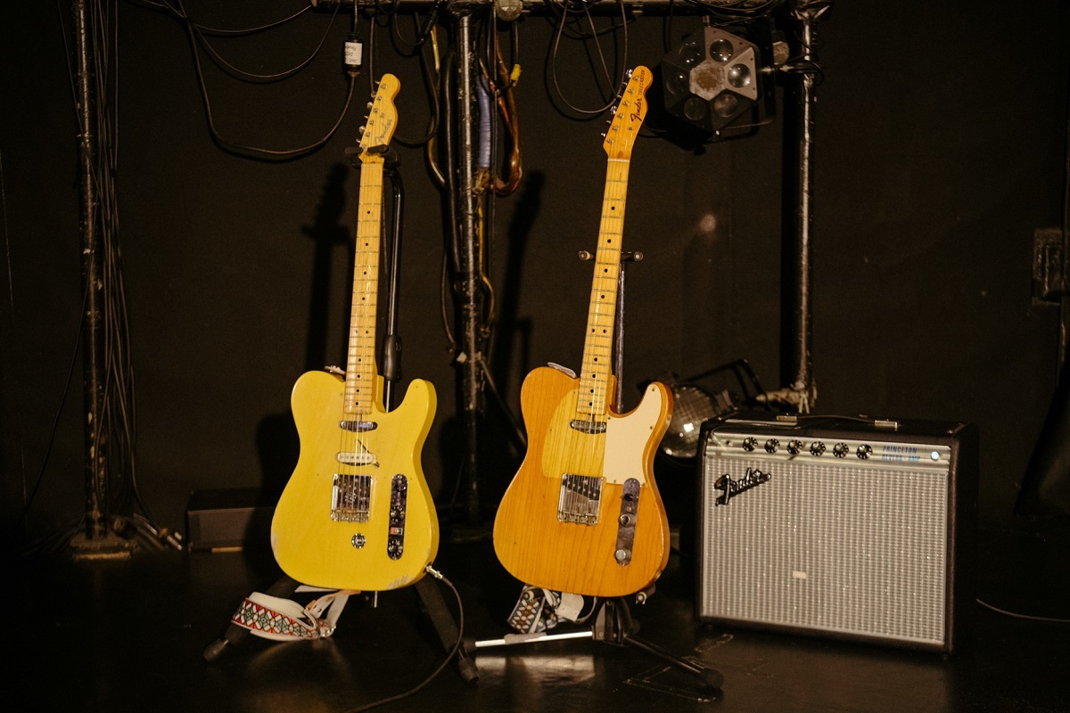 鈴木:そこは違うんだ(笑)。僕は、これが最初に買ったテレキャスターです。ニコルズが始まった頃は、ずっと335(編注:ギブソンのES-335)を使っていたんですよ。でもザ・ホークス(後のザ・バンド)が1966年にボブ・ディランのバックで演奏している有名な映像があって、そこでロビー・ロバートソンが使っているオリンピックホワイトのテレキャスの音色とプレイがめちゃくちゃかっこよくてずっと憧れていて。ニコルズのサウンド的にも335だとぱっとしない時もあったので、よしテレキャスターだ、と思って買いました。51年のフェンダーのノーキャスターのリイシューで、Bベンダーっていうカントリーで使う装置を後付けしています。ナッシュビルのカントリー系のセッションギタリストみたいに真ん中にストラトのピックアップをつけて、ハーフトーンも出せる仕様にして、大改造しています。