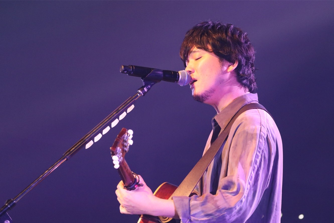 第2部はデビュー15周年の長澤と秦、2人が主役のパートである。2人は音楽性も性格も異なるが、互いをリスペクトする同期組。ステージに横並びで立つと、まず秦が長澤の「左巻きのゼンマイ」を歌い出す。歌は途中からユニゾンも交じり、その後、秦が「キミ、メグル、ボク」、長澤が「明日のラストナイト」と自曲を歌う際もそれぞれコーラスを入れ合うなど、細やかな歌い分けを展開する。興味深かったのは、互いに相手に歌ってほしい曲をリクエストしたというコーナーで、秦は長澤に「虹が消えた日」を、長澤は秦に8月に出たばかりの最新作「LIVING PRAISE」(8年ぶりのフルアルバム!)収録の「三月の風」をリクエスト。これらは2人だけで演奏され、2人の歌力、2本のアコギの重なり合いを堪能できる実に豊かな時間だった。