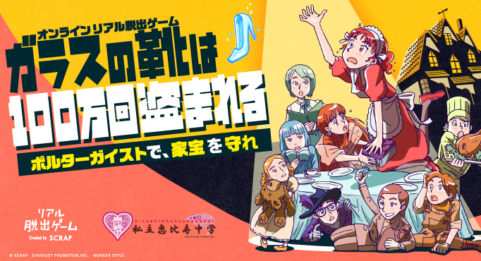 リアル脱出ゲームを企画運営する株式会社SCRAPは、最新マルチアングルシステムを用いて謎解きと“幽霊体験”が楽しめる、新作オンラインリアル脱出ゲーム『ガラスの靴は100万回盗まれる』を、2021年9月30日(木)より開催することを発表した。