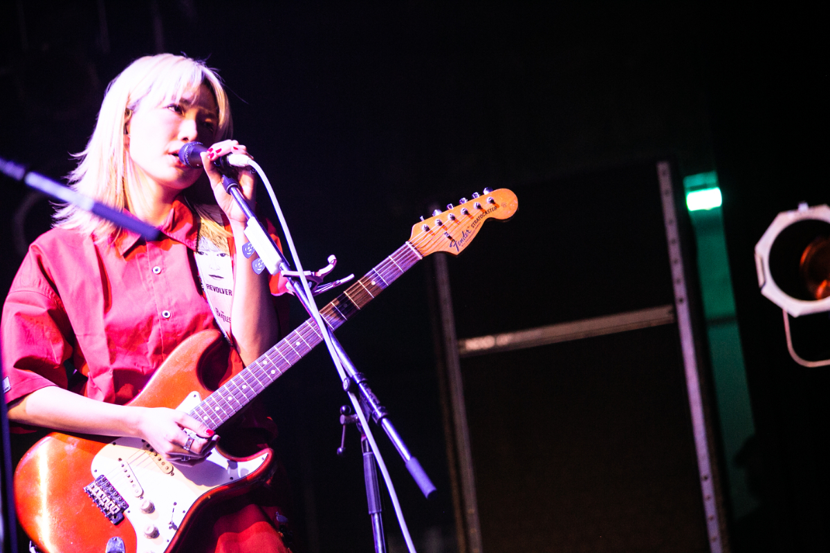 さらにそこからエキセントリック&アグレッシヴな「スーパーサマー」と「爆裂パニエさん」を連続でプレイされるのだから、アドレナリン大放出状態だ。ポルカドットスティングレイの雫もMCで言及していたが、tricotの楽曲はどれも難解だ。けれど、変拍子の狭間でキメの一音がハマった時の気持ち良さは半端じゃない。それは中毒性と呼ぶのとはまた違う、もっとポップで、遊び心のある彼女たちのセンスの賜物だ。