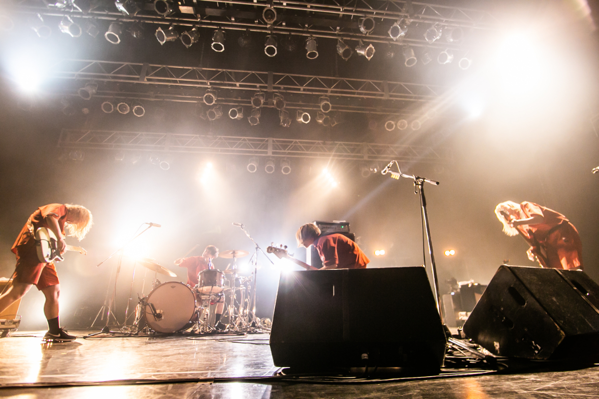 そして、トリを担うのはtricot。動物園の清掃員をイメージしたというオレンジのセットアップに身を包んだ4人がステージに登場し、中嶋イッキュウ(Vo/G)の弾き語りから「おまえ」をドロップ。この中嶋の伸びやかなボーカルの後に待ち構えるのが、ヒロミ・ヒロヒロ(Ba/Cho)と吉田雄介(Dr)の強烈な重低音とドラミングだと頭では分かっていても、いざそのタイミングを迎えるとしっかり喰らうし、この「やられた!」感がたまらない。