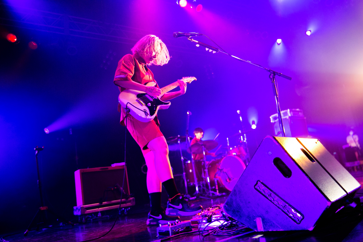 「デトックス」という言葉の通り、風刺的でエッジの効いた歌詞が、不条理に疲弊した心の膿を出す為の助力となる。怪獣の襲来を経た世界を舞台にした「ホワイトレインコートマン」や、エイリアンとの邂逅を描いた「アダハダエイリアン」など、独創性のある世界観が描かれていながらも、聴き手のリアルとしっかりとリンクするのがシナリオアートの個性だ。現実と非現実、そのふたつの世界を紡ぐような彼らの楽曲は、極上の浮遊感とエナジーを与えてくれる。MCでは、これまでも幾度となくtricotのピンチヒッターとしてシナリオアートが呼ばれていることについて、ハットリが「うちらあってのtricotやと思っています」と堂々と宣言。その言葉を受けて、フロアからは「まさに!」と言わんばかりの拍手が沸き起こった。そうした信頼関係は一朝一夕で築けるものではないし、互いが互いの音楽を敬愛しているからこそ得た絆だろう。馴れ合いではなく、高め合いを経て進んできた戦友だからこそ託されたトップバッターという役目を、ラストの「シーユーネバーランド」まできっちりと果たしたシナリオアートは、猛烈に格好良かった。