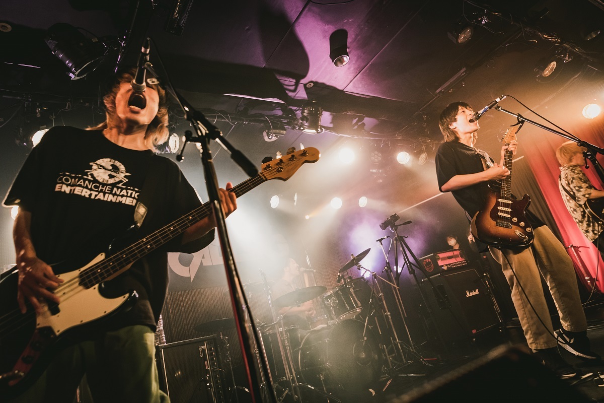 昨年、配信で行われた『NIPPON CALLING』のオーディションで優勝し、オンラインでの出演を果たした彼ら。“会場で出るのは今年が初めて。めちゃくちゃワクワクしてます!”と挨拶すると、山口大貴(Vo&Gt)が感傷的な声で歌う弾き語りで始まるバラードソング「曙光」で会場の空気をガラッと変える。さらに“突然すべて失ったこと あなたはありますか?”の問いかけで始まり、真摯なメッセージを伝える「13歳の夜」と続き、勢いだけでないバンドの魅力を見せつける。ラストは“本気でやります、受け取って下さい!”と「愛していけるように」、「笑って」を渾身の力で披露。初めて観たけどめちゃくちゃ良いライブだったし、興奮したし、こういう出会いがあるからライブハウスは最高なんだ! と改めて思わされた。