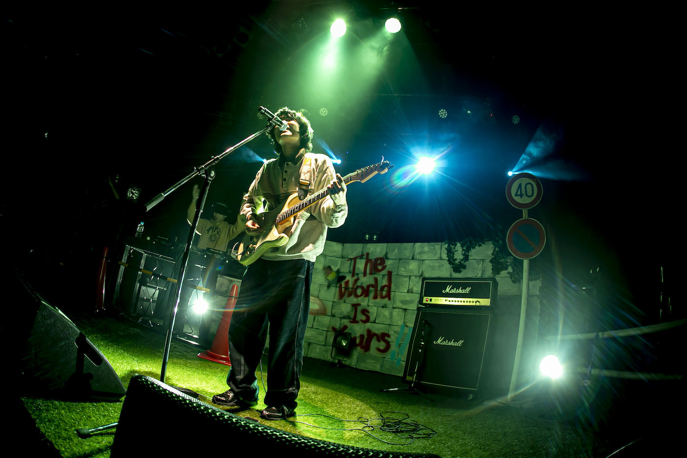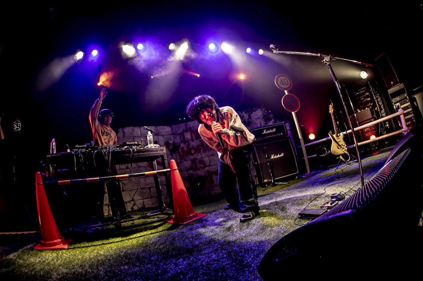 「こんな世の中で、どう生きればいいのか。この先も続く理不尽と戦うために、知性を上手く使って抗っていきましょう」というつぶやくようなMCの語り口に対して、新作アルバム『終わりのカリカチュア』のリリックは“普通とされているもの”を疑う批評性の切れ味は鋭い。声は上げられなくても、両手を挙げることでパフォーマンスに応えるオーディエンスとは、「泣けない人には優しくない世界」が象徴する現代社会の居心地の悪さをものともせず、音楽がもたらす高揚感を糧に前に進んでいこうというメッセージを共有。会場はMomの心地良い居場所である架空の都市セタガヤそのものになった。